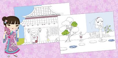 Découvre le Japon avec Akiko ! Clique sur l’image pour télécharger ton PDF et amuse-toi à colorier des scènes traditionnelles.