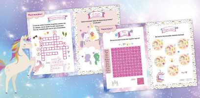 Mots-mêlés, différences, labyrinthes, jeu d’ombre… Clique sur l’image pour télécharger ton PDF et amuse-toi avec les licornes !