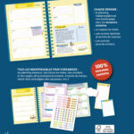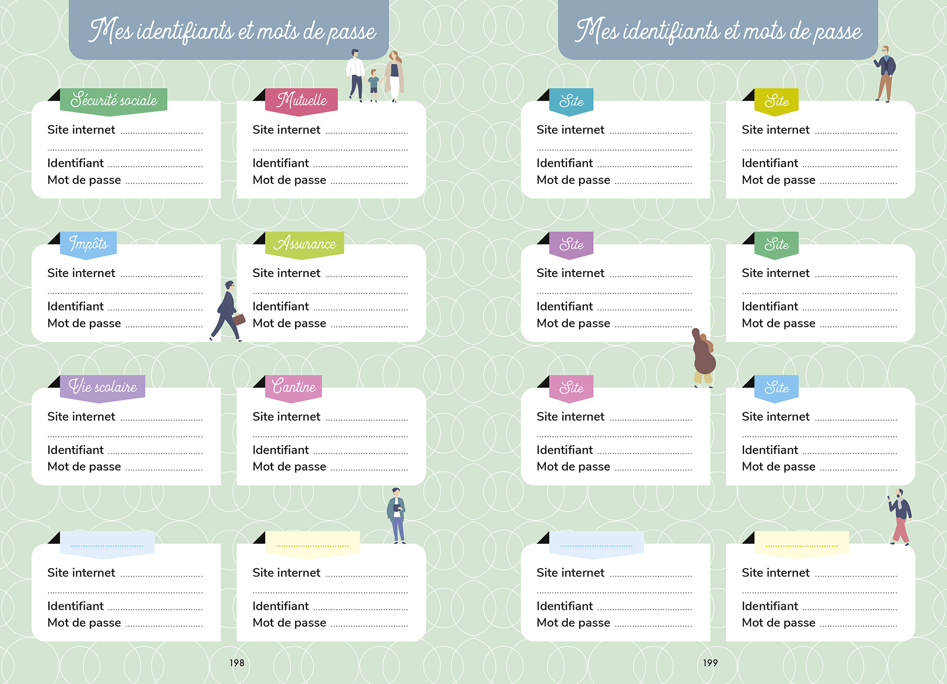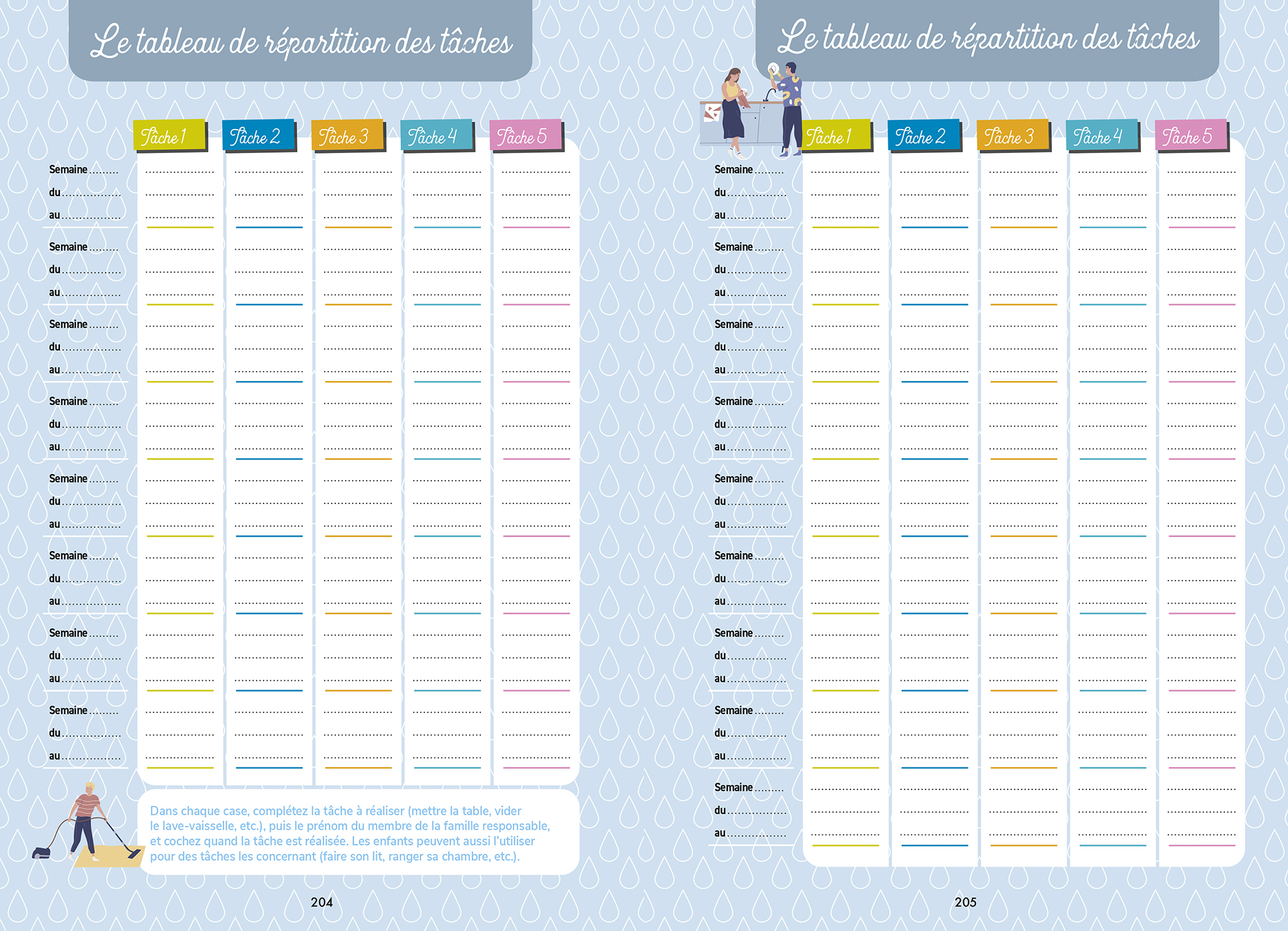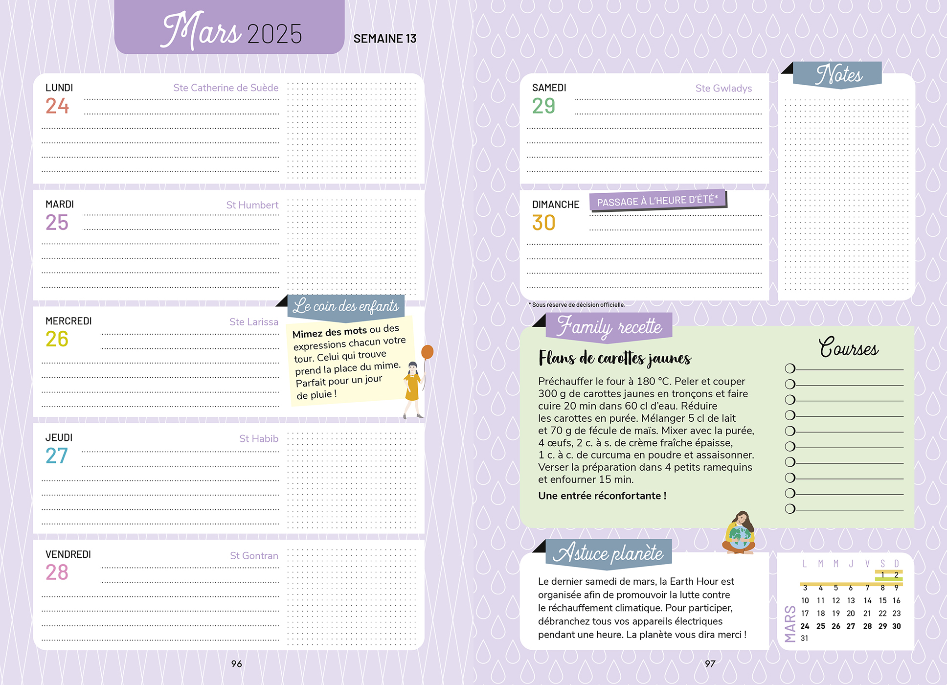 – Des pages ultra pratiques (contacts, emplois du temps, check-lists et budgets de vacances, etc.).