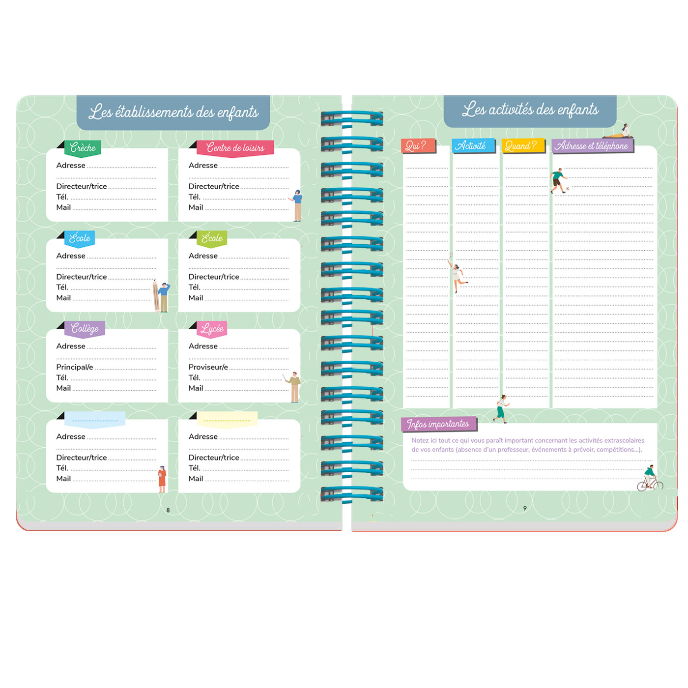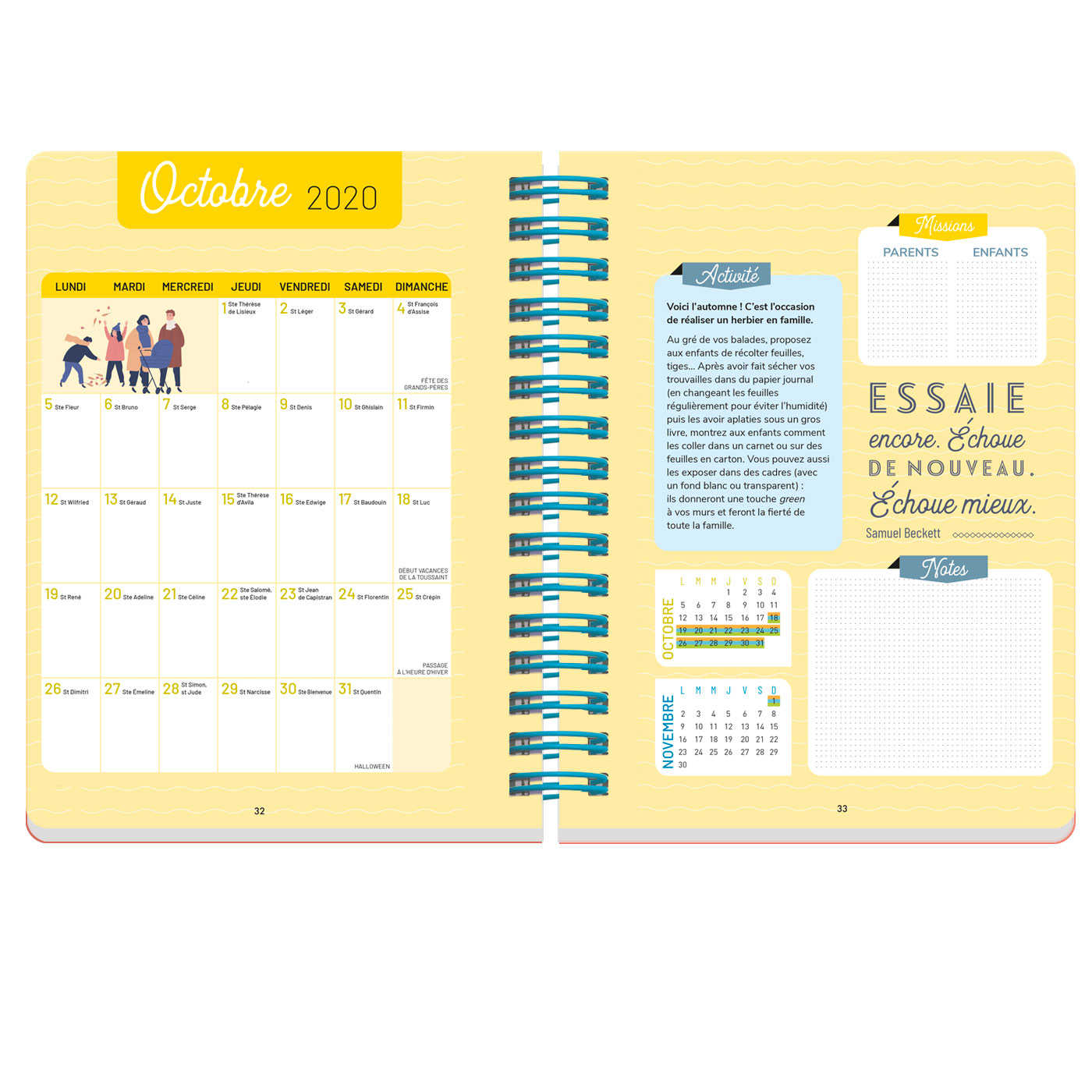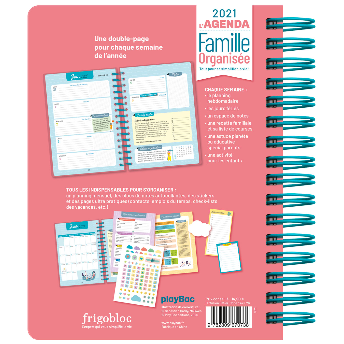 Un agenda 100 % nouveau et féminin pour bien organiser sa vie de famille de septembre 2021 à décembre 2022 ! – Chaque mois : une vision claire du mois en cours et de celui à venir, un espace de notes, des activités à faire en famille, une mission positive attitude et une citation inspirante. – Une double page par semaine pour s’organiser et glaner des idées d’activités à faire avec les enfants (jeux, ateliers créatifs, cuisine…), un large espace dédié au week-end avec un espace de notes, une recette à faire en famille accompagnée de sa liste de courses, une astuce inspirante pour la semaine et une vision du mois en cours. – En bonus : une page de notes repositionnables pour ne rien oublier et 80 stickers variés et modernes pour toute la famille !