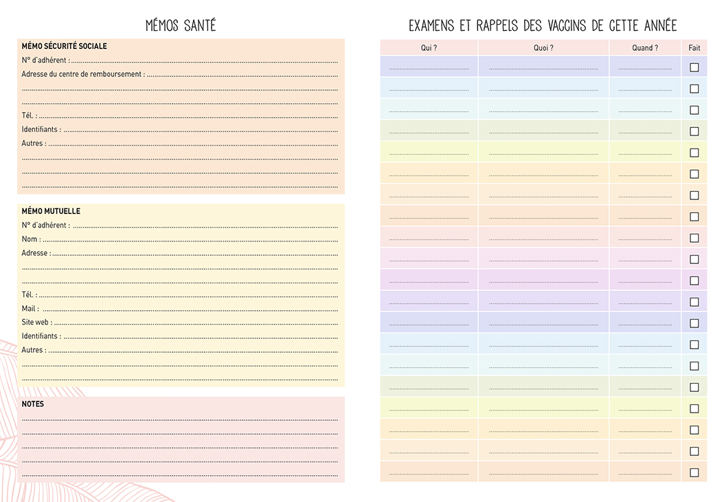 – Infos santé (sécurité sociale, mutuelle, vaccins et examens de l'année)
