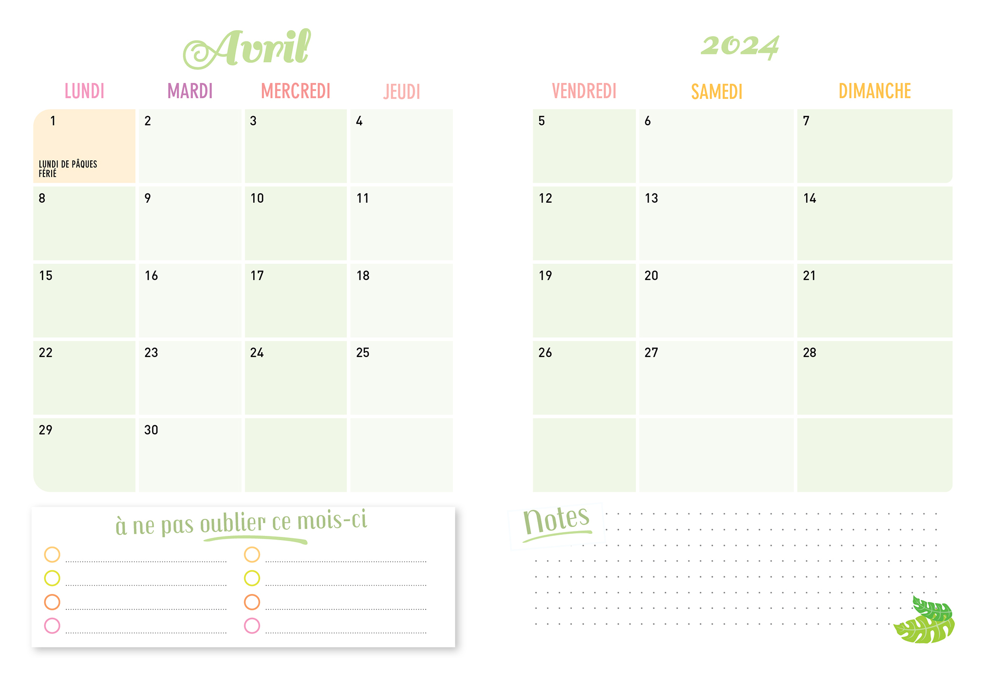 – 16 plannings mensuels pour s'organiser à l'avance