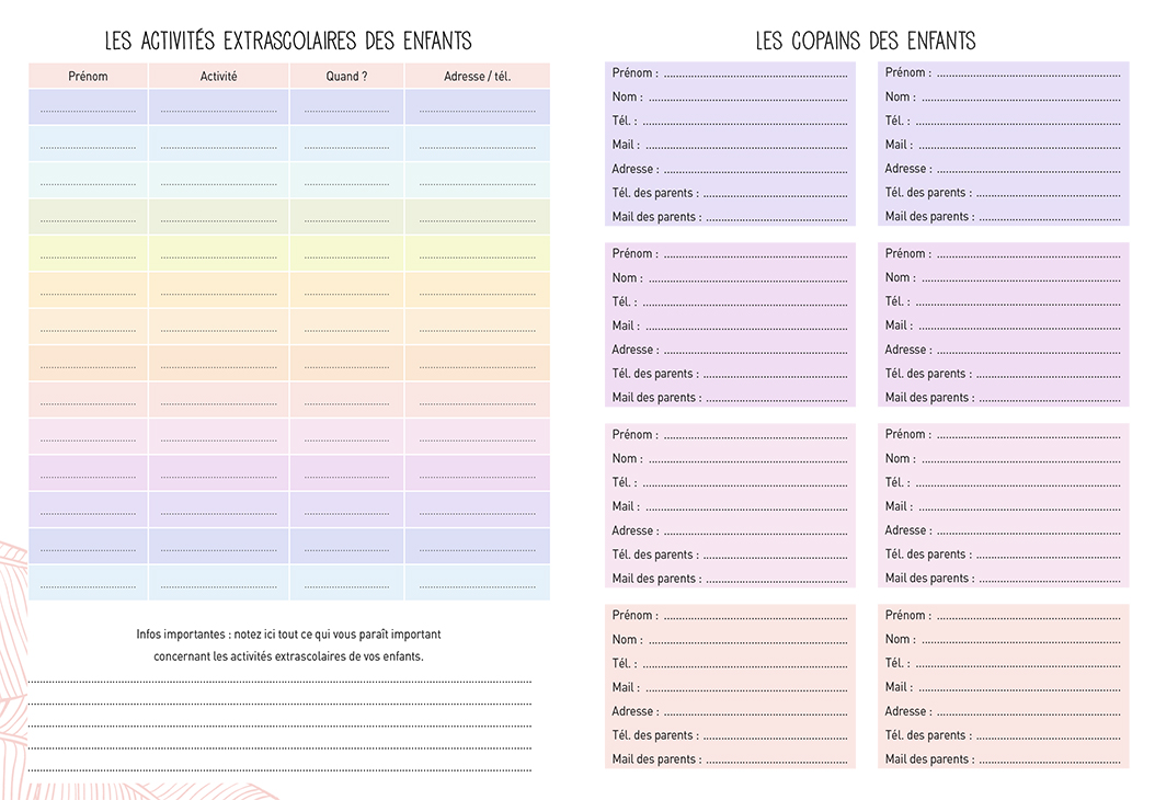 – Des pages pratiques pour tout garder à portée de main :