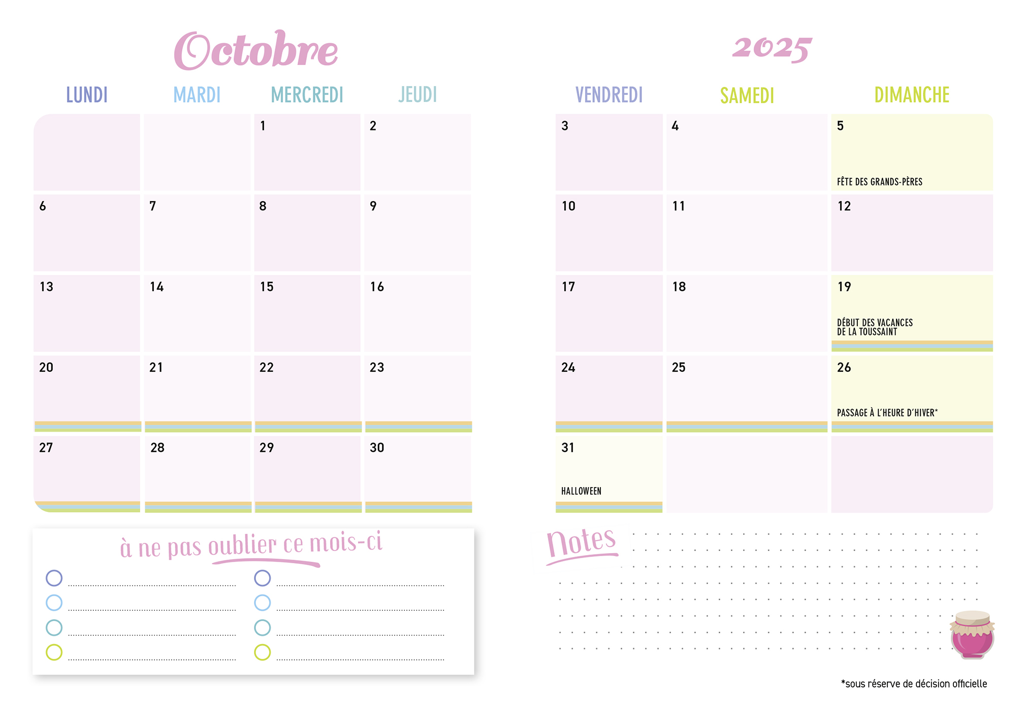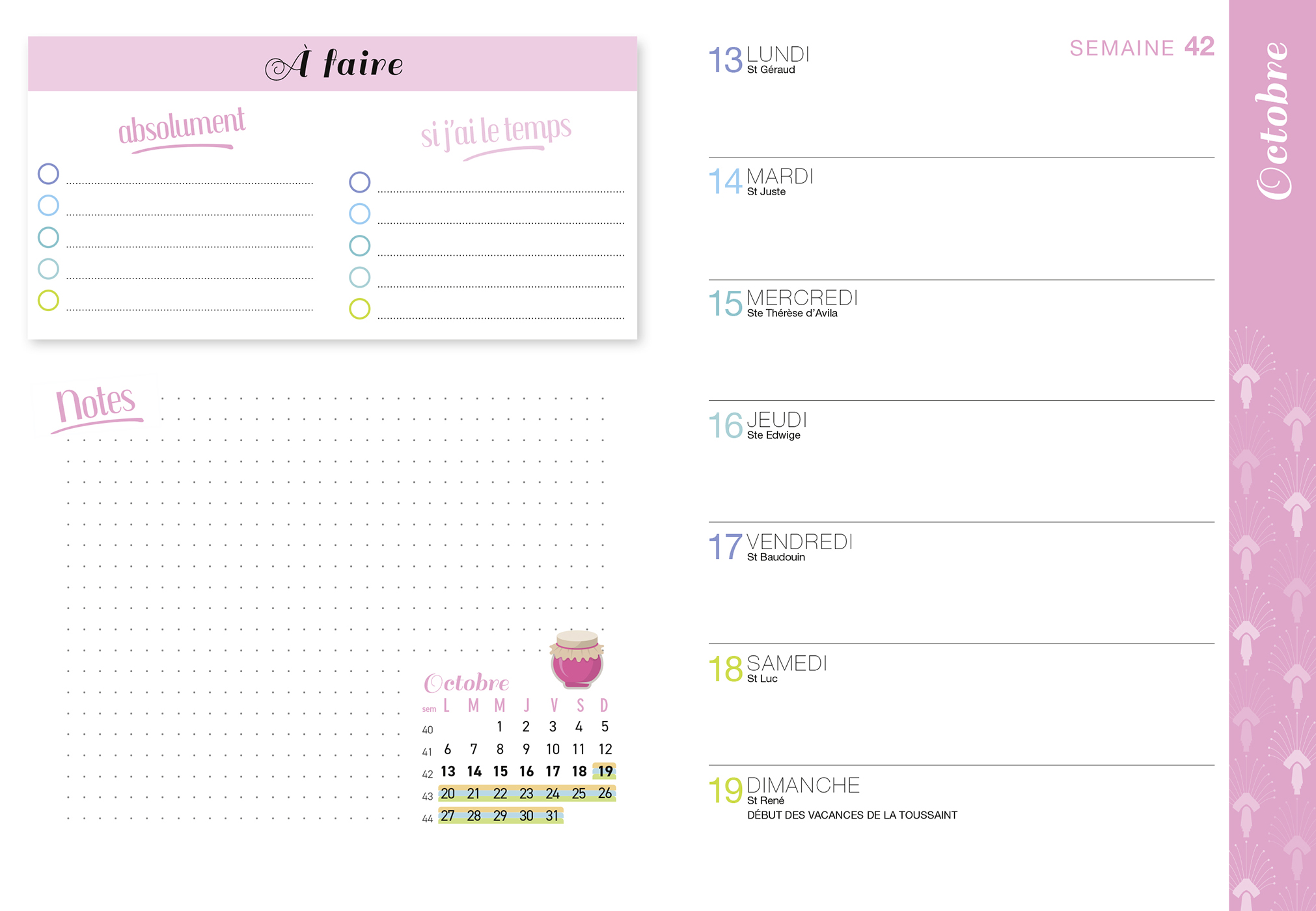 – 1 agenda hebdomadaire pour tout noter et ne plus rien oublier