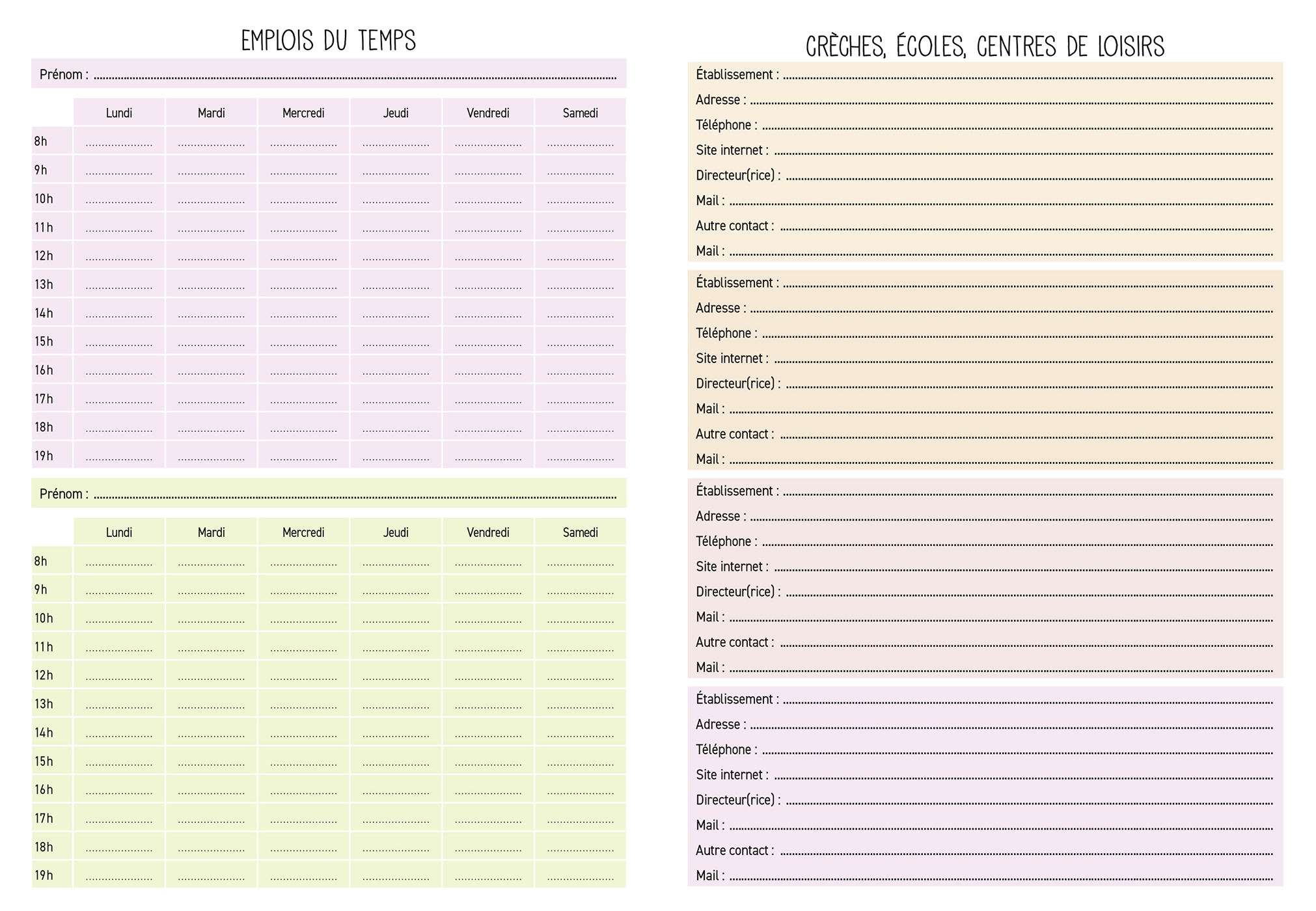 – Des espaces scolarité, garde des enfants, activités extrascolaires, infos santé (sécurité sociale, mutuelle, vaccins et examens de l’année)
