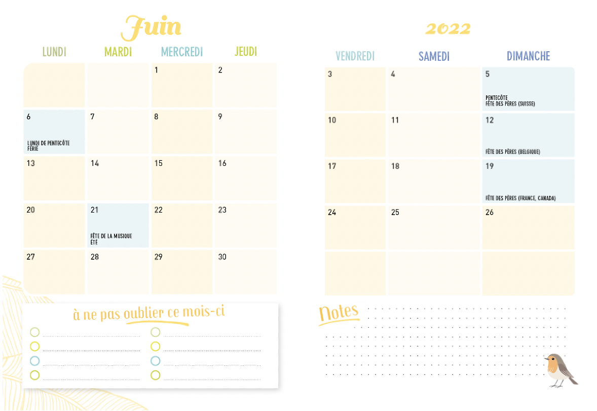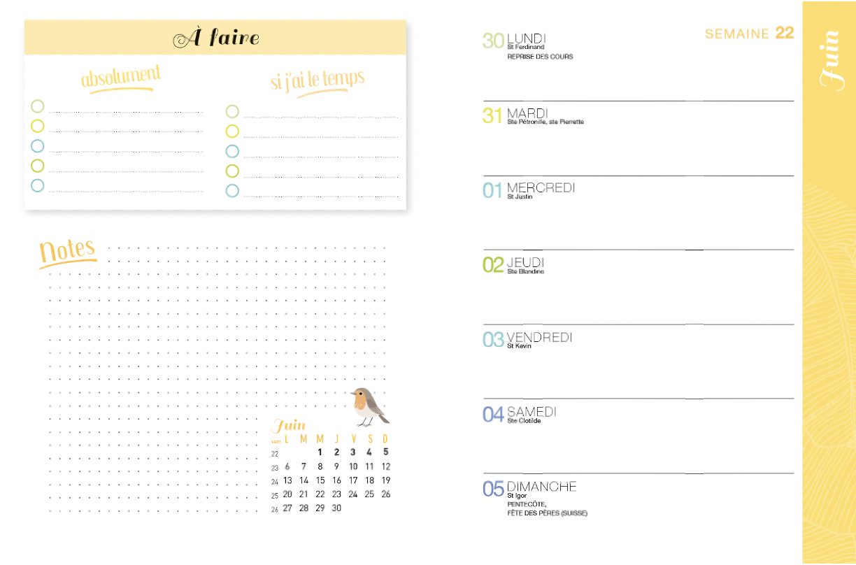 Pour une vie de famille organisée, craquez pour l’agenda de poche : un format compact et original avec un agenda détachable à glisser dans son sac et, en plus, des blocs pratiques pour tout noter (listes de courses, listes de tâches et notes repositionnables) ! En bonus : planning de la semaine, calendrier des vacances, emploi du temps des enfants, infos et numéros utiles… De septembre 2021 à décembre 2022.