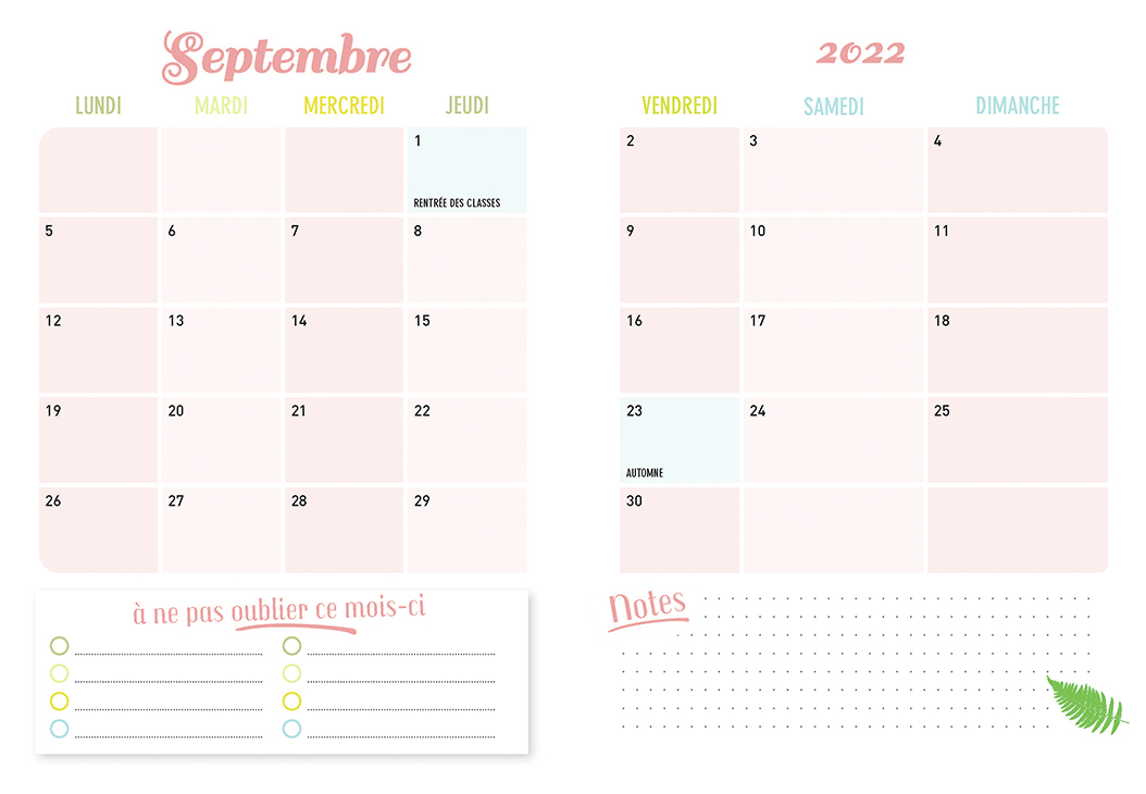 En bonus : planning de la semaine, calendrier des vacances, emploi du temps des enfants, infos et numéros utiles… De septembre 2022 à décembre 2023.