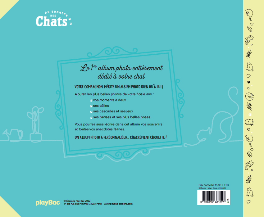 Vous pourrez aussi écrire dans cet album, vos souvenirs et toutes vos anecdotes félines.