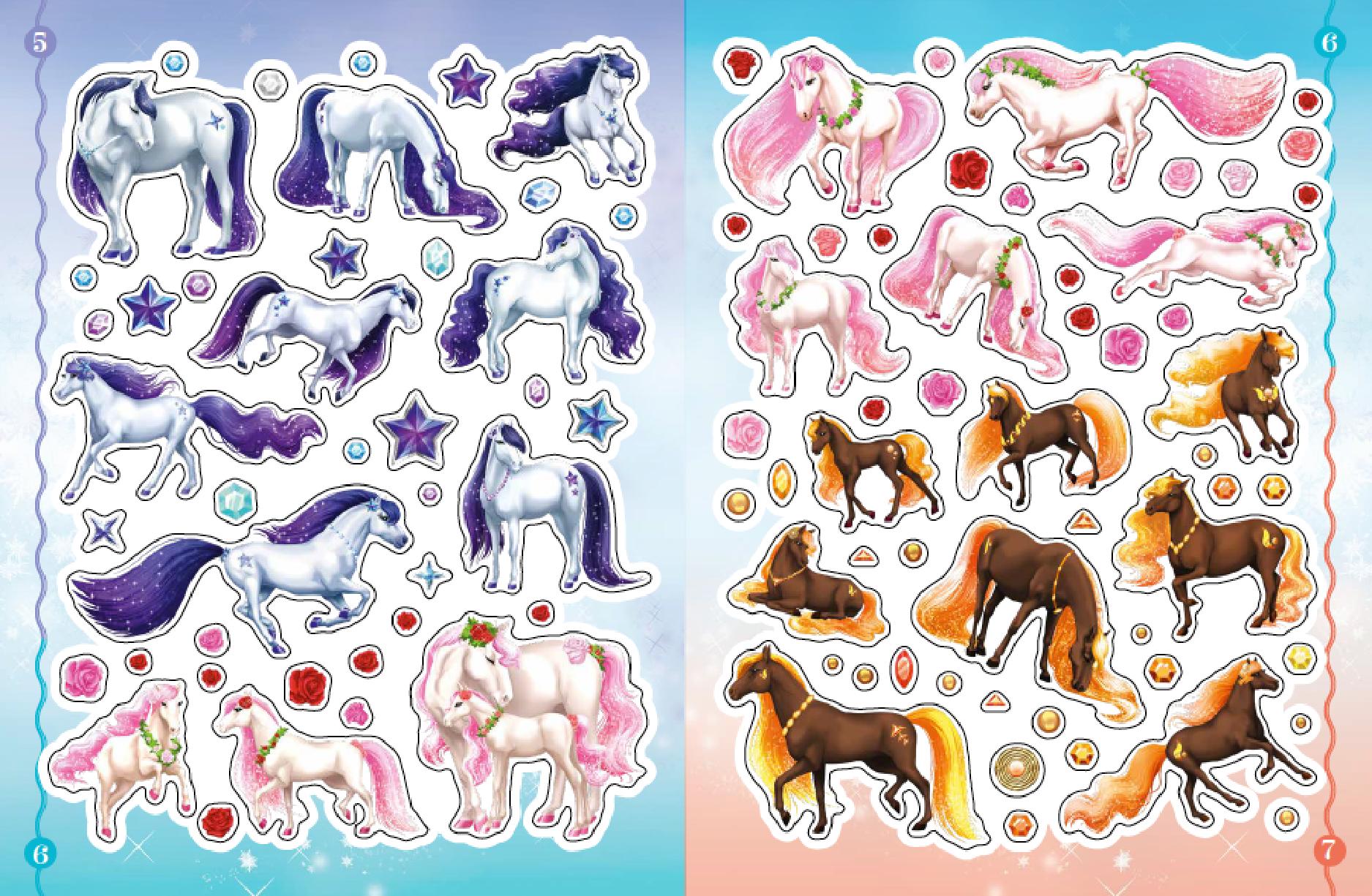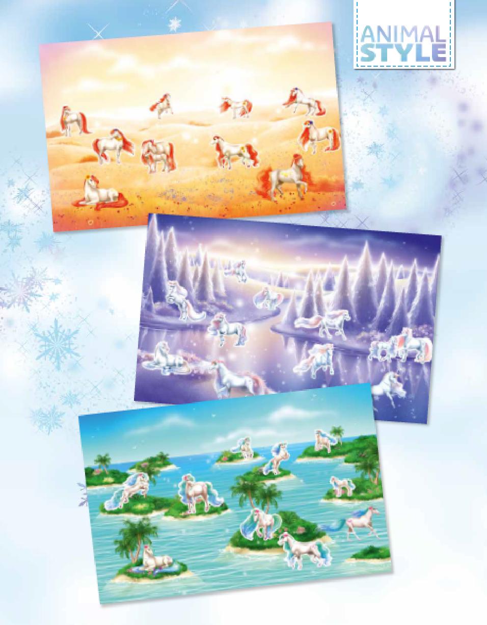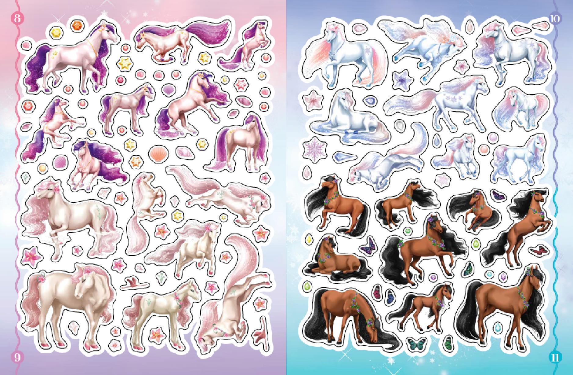 À toi d'imaginer et de créer des scènes fantastiques remplies de chevaux. À chaque famille de chevaux correspond un univers magique à décorer. Aide-toi des numéros sur les stickers ou laisse libre cours à ta créativité !