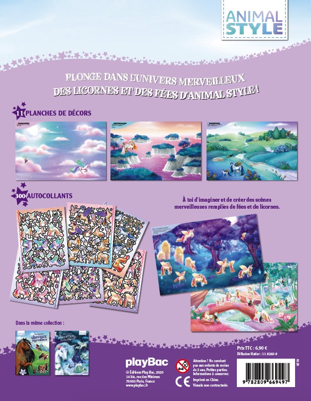 Plonge dans l’univers merveilleux des licornes et des fées d’Animal Style ! À toi d’imaginer et de créer des scènes merveilleuses. Ce cahier contient : – 300 autocollants ; – 11 planches de décors : les nuages célestes, le jardin des paons, la forêt magique, la cascade merveilleuse… À chaque famille de licornes correspond un univers magique à décorer. Aide-toi des numéros sur les stickers ou laisse libre cours à ta créativité !