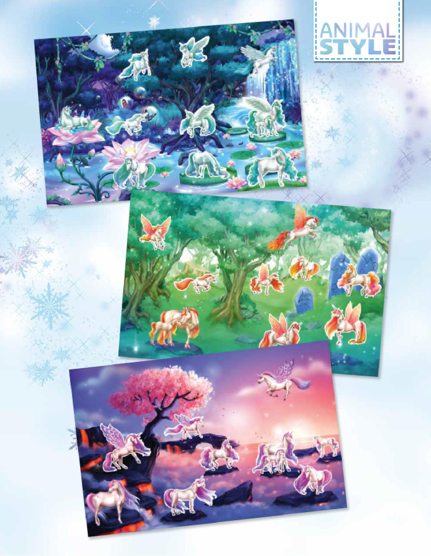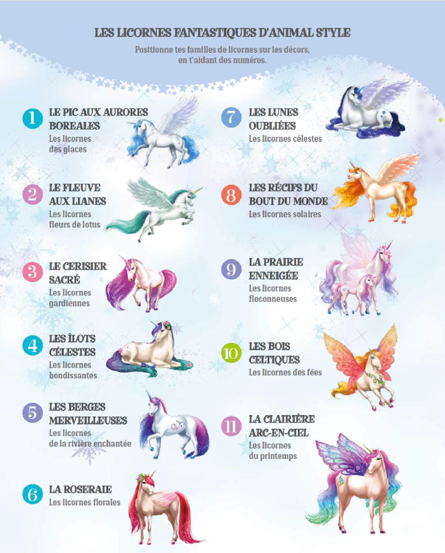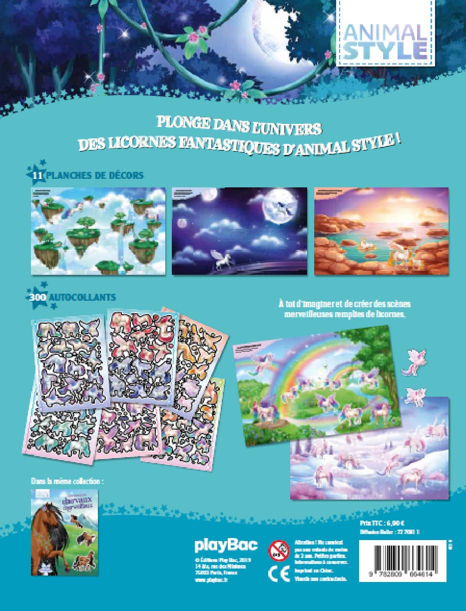 Plonge dans l’univers merveilleux des licornes fantastiques d’Animal Style ! À toi d’imaginer et de créer des scènes merveilleuses. Ce cahier contient : – 300 autocollants ; – 11 planches de décors : le fleuve aux lianes, les lunes oubliées, la clairière arc-en-ciel… À chaque famille de licornes correspond un univers magique à décorer. Aide-toi des numéros sur les stickers ou laisse libre cours à ta créativité !