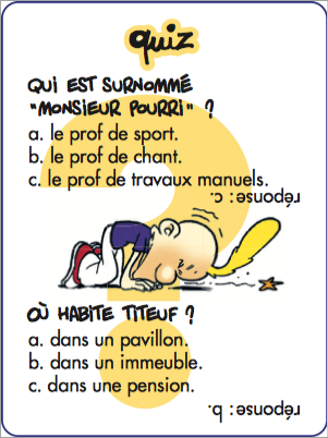 Un super quiz complètement Tchô avec de nombreux défis dessins, mimes et quiz pour être le roi de la récré !