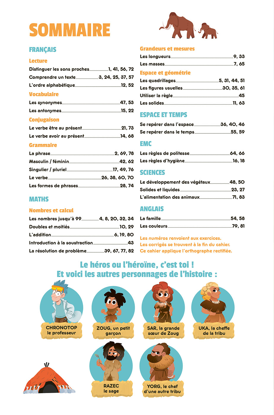 Ouvre vite ce cahier et vis une aventure fabuleuse grâce au professeur Chronotop et à sa machine à voyager dans le temps, tout en révisant les notions essentielles de ton année de lecture, écriture, maths et découverte du monde !