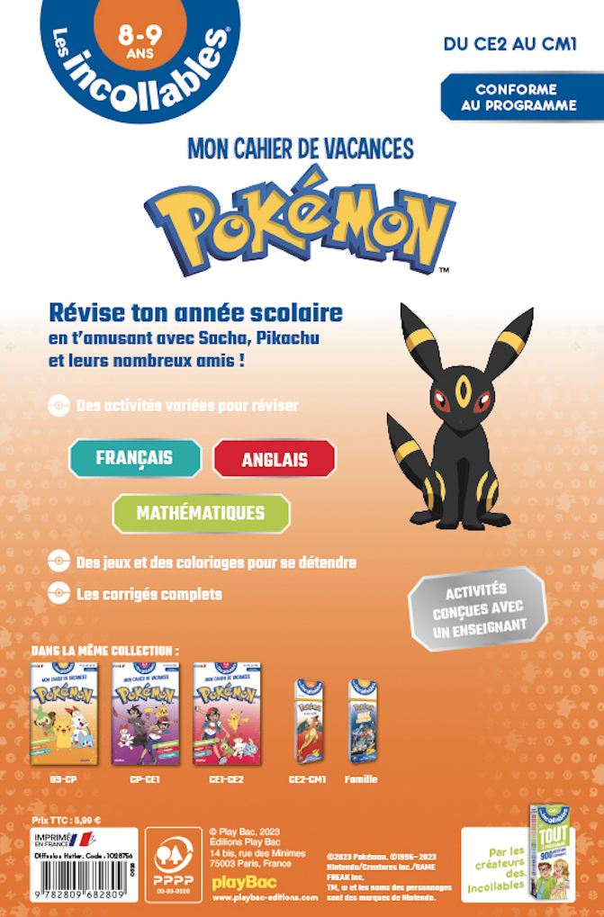 Pour trouver une librairie où acheter Cahier de vacances 2024 Pokémon – Les incollables – CE2 au CM1 – 8/9 ans, on vous invite à visiter le site Place des libraires !Place des Libraires