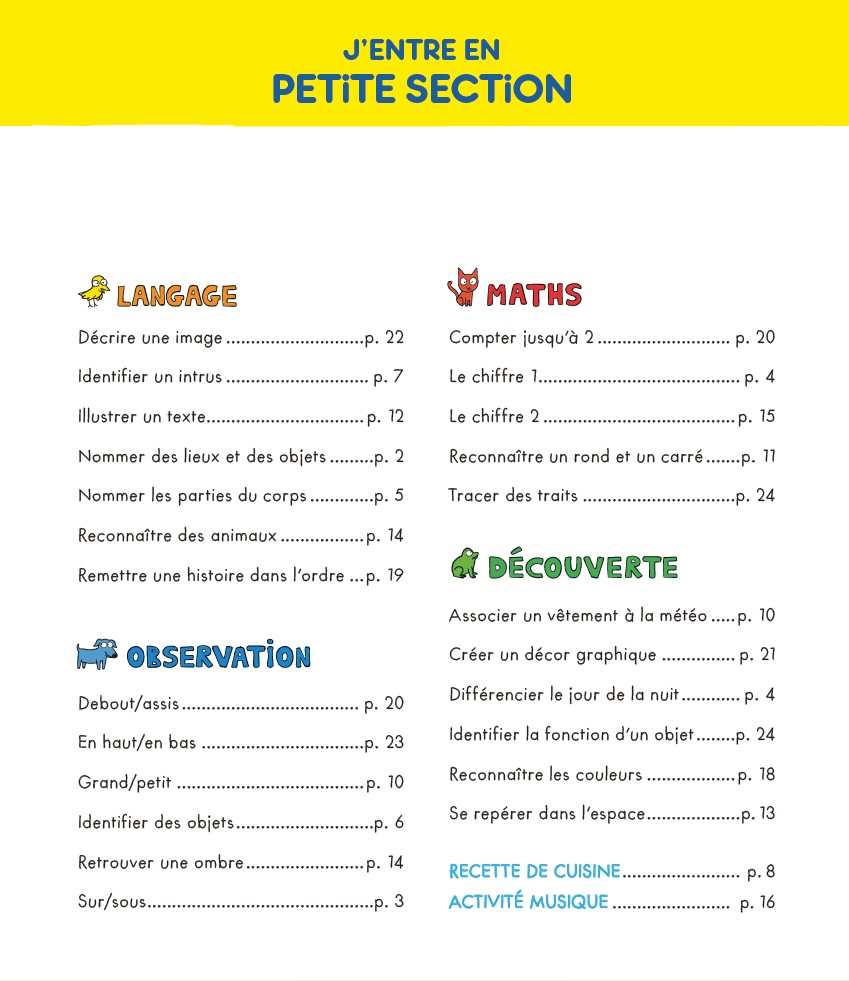 Un cahier de vacances complet pour réussir son entrée en petite section avec Simon et ses amis !