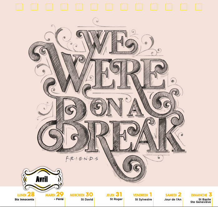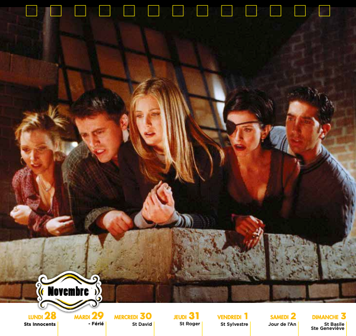 La série culte et vos personnages préférés sont de retour ! Ils vous ont fait mourir de rire ou fait essuyer une larme d’émotion ? Grâce aux plus belles photos d’épisodes, vous allez pouvoir passer une année entière avec votre bande d’amis favorite ! Qui est votre préféré ? Rachel, Ross, Joey, Phoebe, Chandler ou Monica ? Ils sont tous là pour vous faire revivre les meilleurs moments de la série.