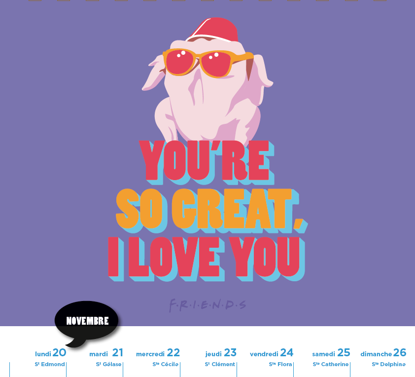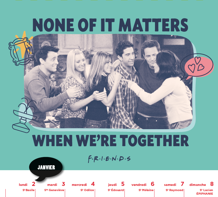 Vous êtes fan de Rachel et Ross ? Chandler et Monica sont vos préférés ? Ou vous craquez pour Phoebe et Joe ? Ils sont tous de retour rien que pour vous dans ce calendrier.