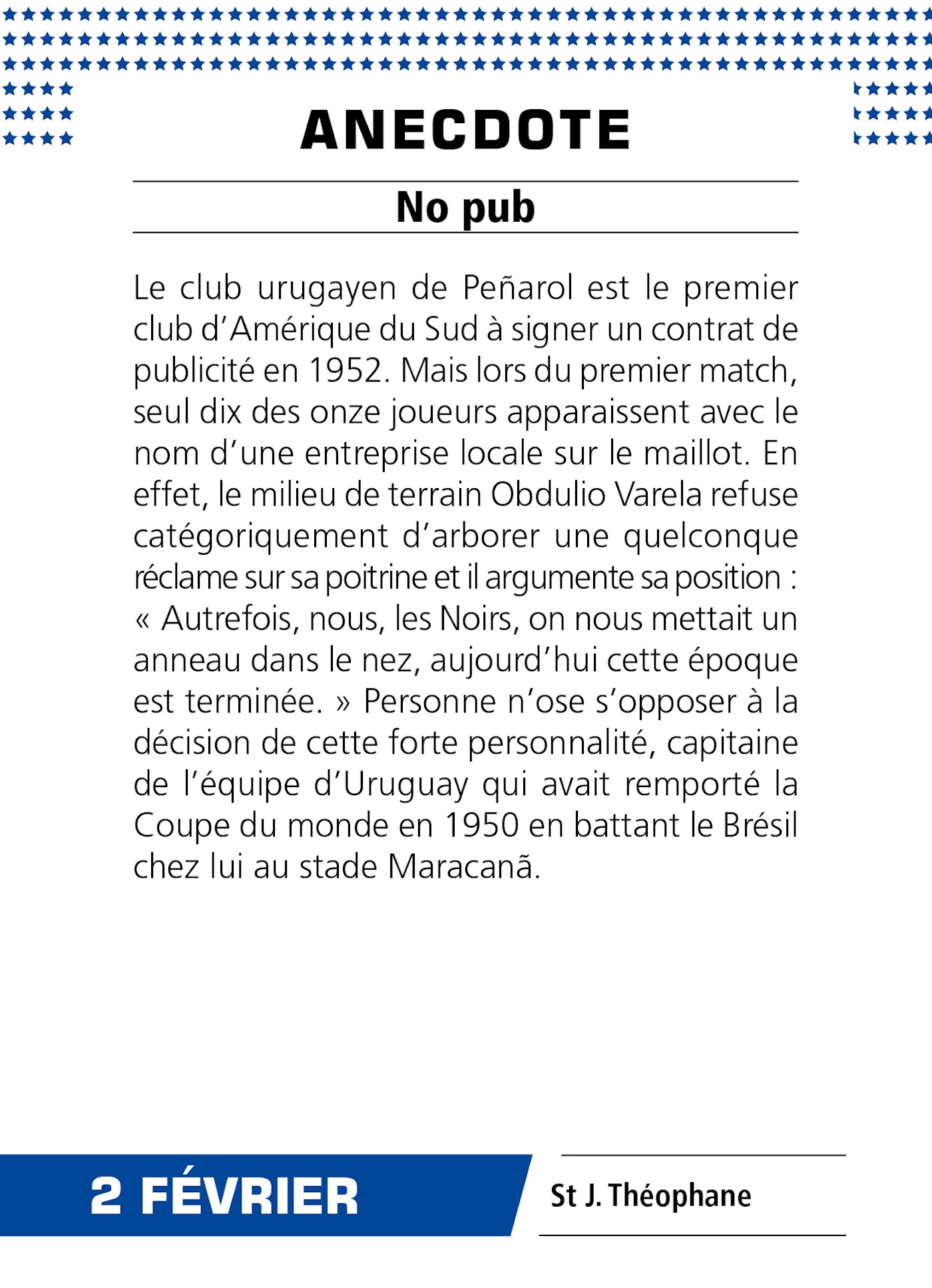 Amoureux du ballon rond, retrouvez chaque jour des portraits de grands joueurs, des matchs de légende, des anecdotes incroyables, des quiz pour tester vos connaissances et des tops fourmillant d’informations. Les meilleures équipes mondiales et françaises, les matchs les plus fous, vos joueurs favoris… vous saurez tout sur la planète football !