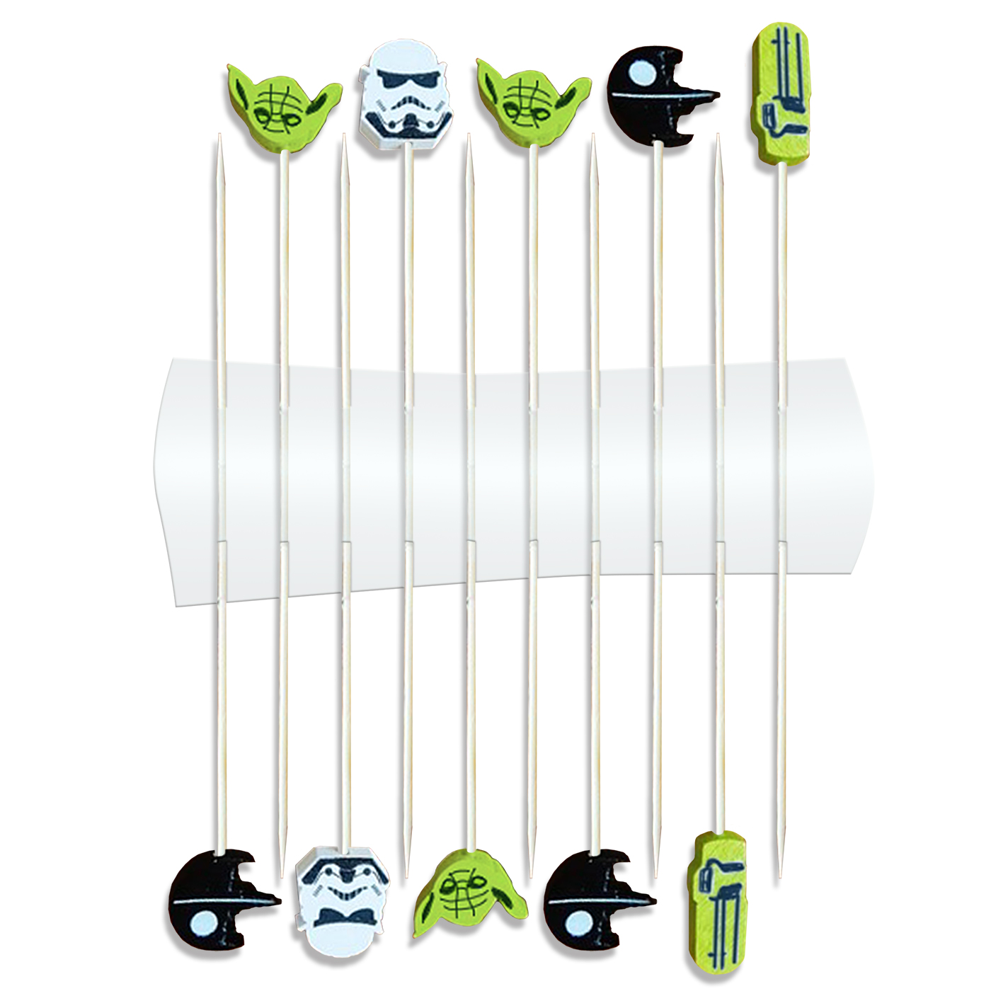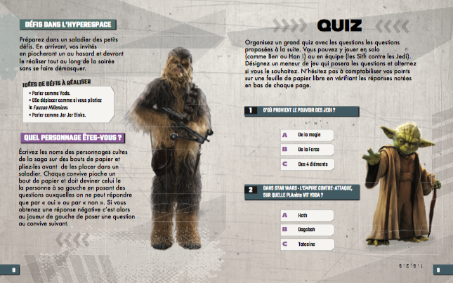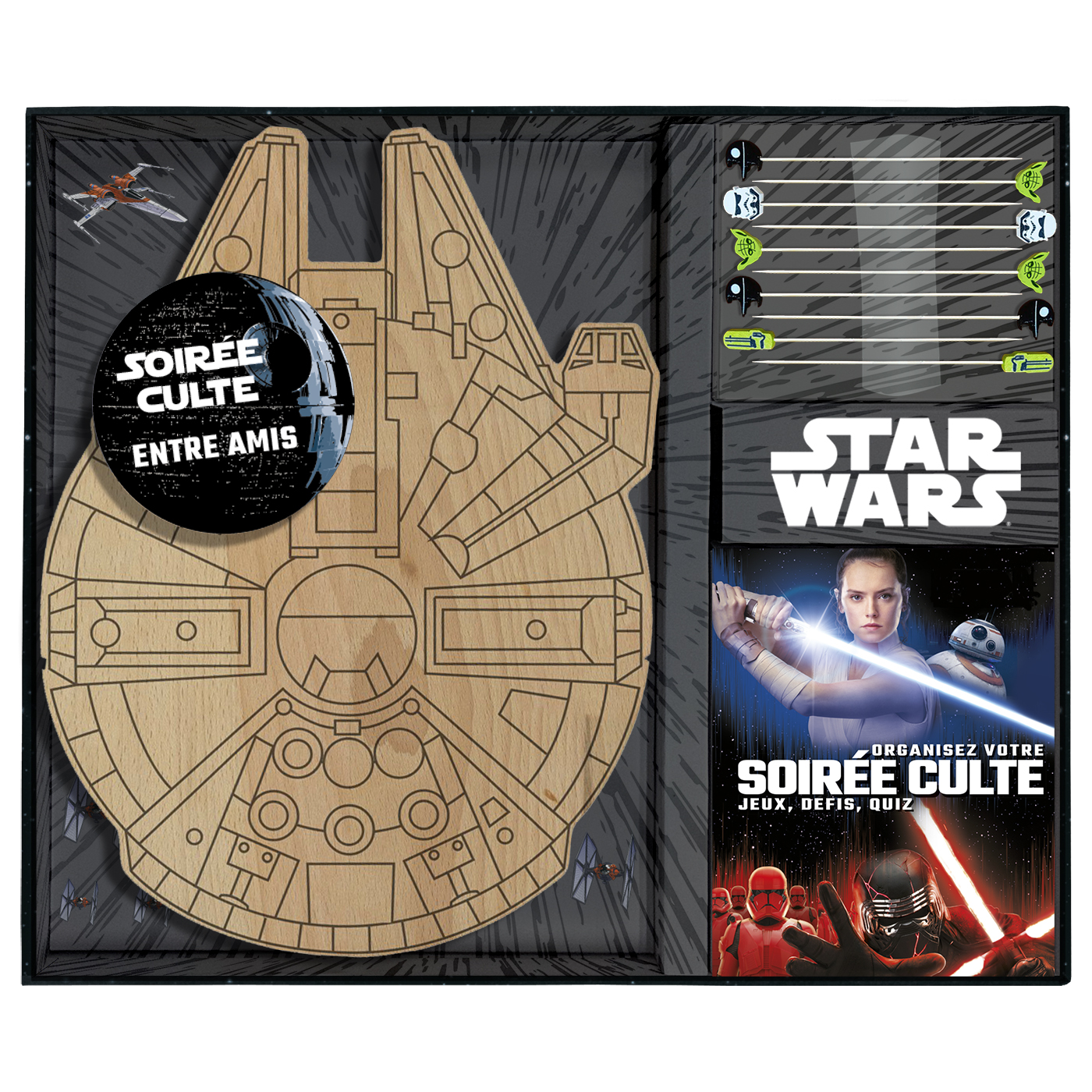 Animez la plus culte des soirées entre amis grâce aux 100 quiz du livret, une planche de dégustation en forme de Faucon Millenium et 10 pics à brochettes à l’effigie de vos héros Star Wars. Prêts pour une soirée culte ?