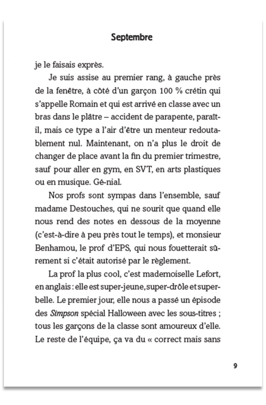 On retrouve dans ce livre toutes les problématiques d'un enfant qui entre au collège : les professeurs, l'angoisse de l'emploi du temps, les heures de colle, les devoirs…