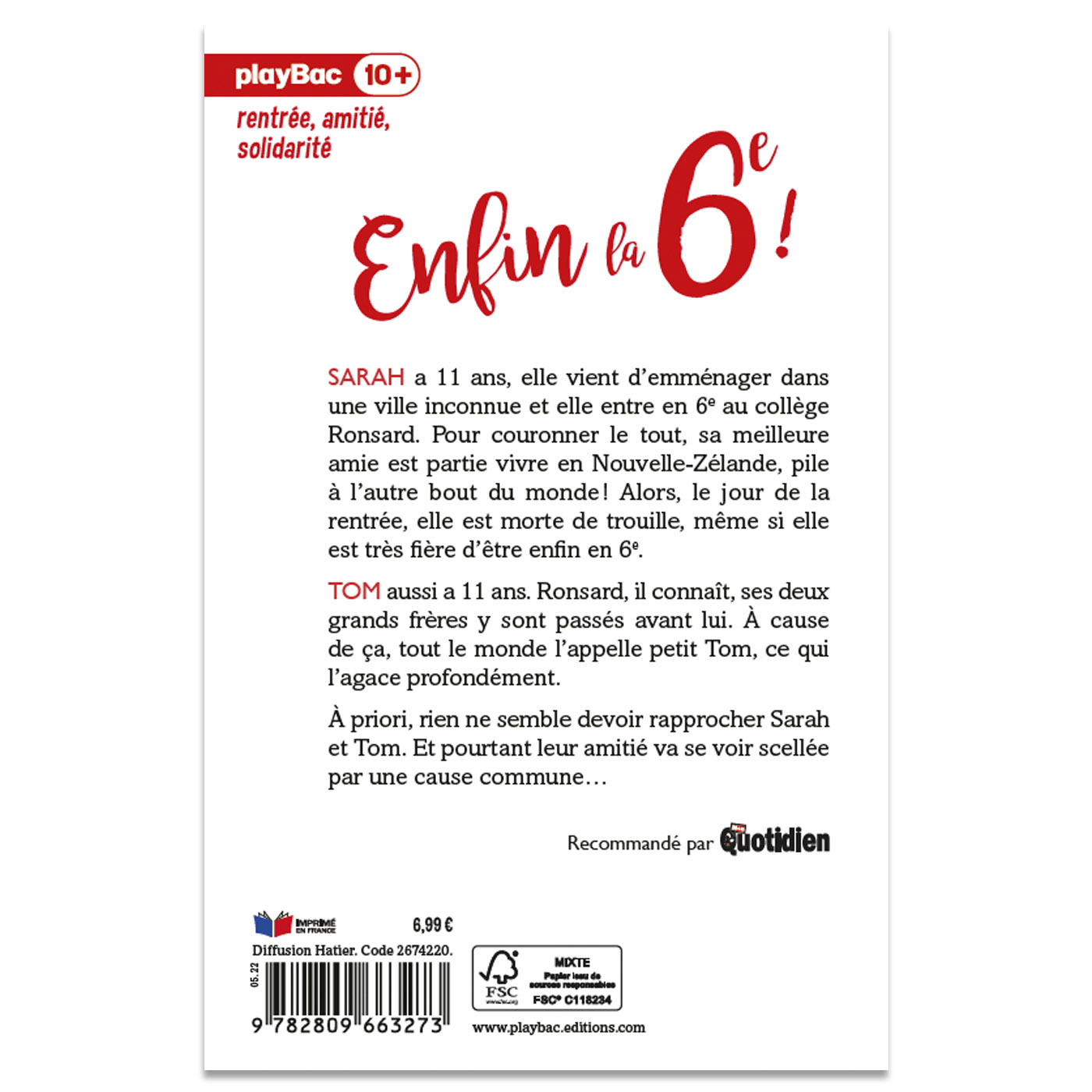 SARAH a 11 ans, elle vient d'emménager dans une ville inconnue et elle rentre en 6e au collège Ronsard. Pour couronner le tout, sa meilleure amie est partie vivre en Nouvelle-Zélande, pile à l'autre bout du monde ! Alors, le jour de la rentrée, elle est morte de trouille, même si elle est très fière d'être enfin en 6e.