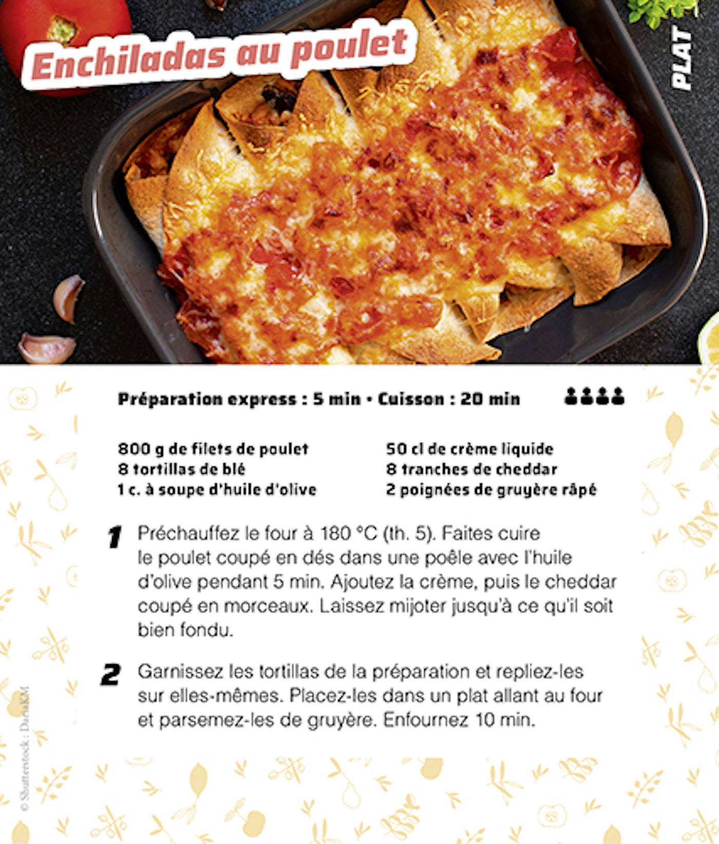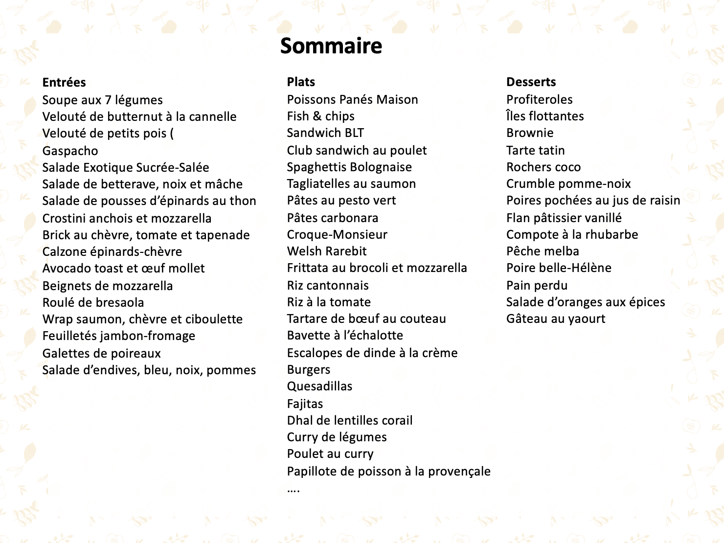 – 1 porte-fiches aimanté contenant 30 fiches de recettes recto/verso, soit 60 recettes express et gourmandes (entrées, plats et desserts).
