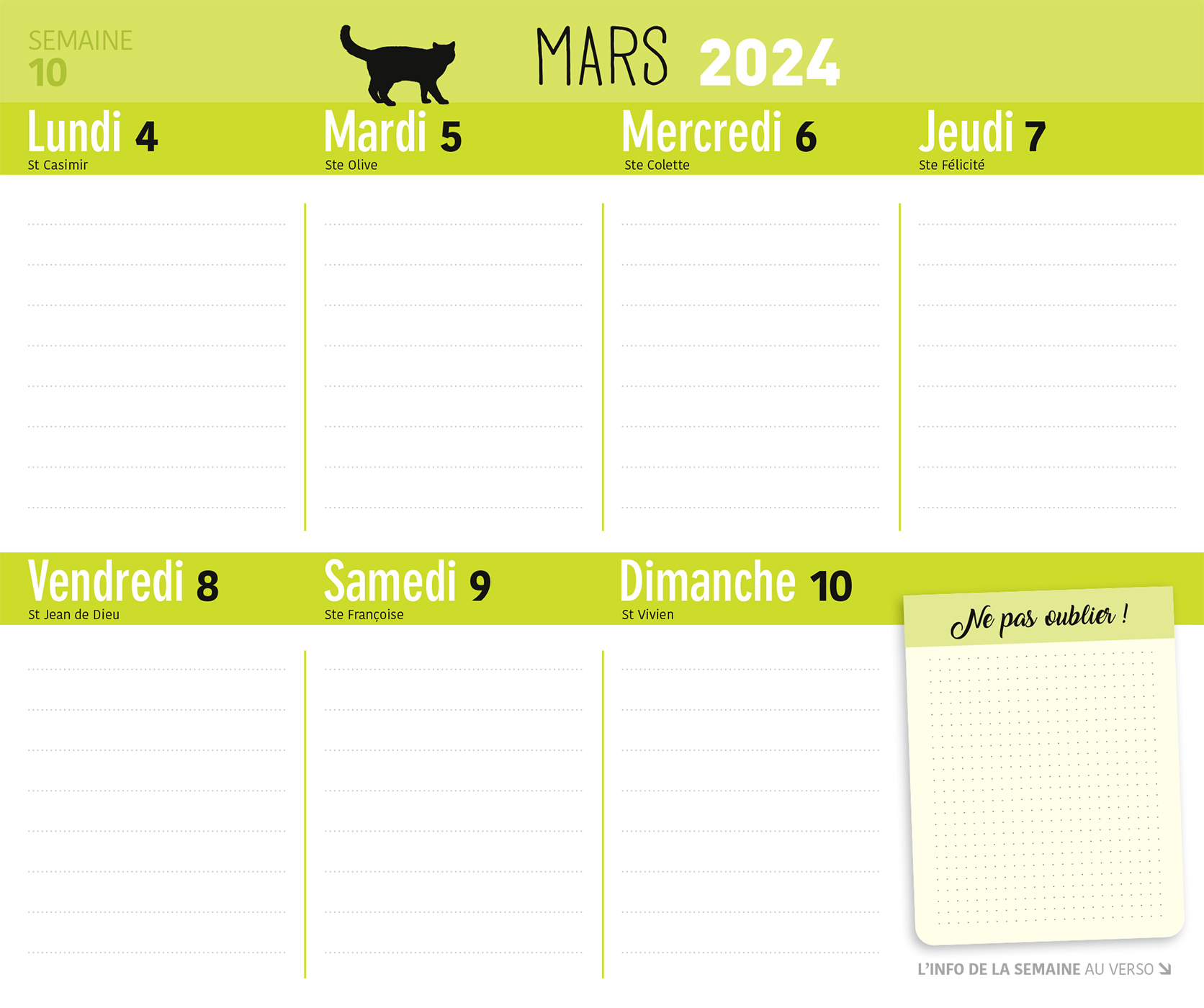 Pour trouver une librairie où acheter Frigobloc Hebdomadaire 2024 Chats (de sept. 2023 à déc. 2024), on vous invite à visiter le site Place des libraires !Place des Libraires