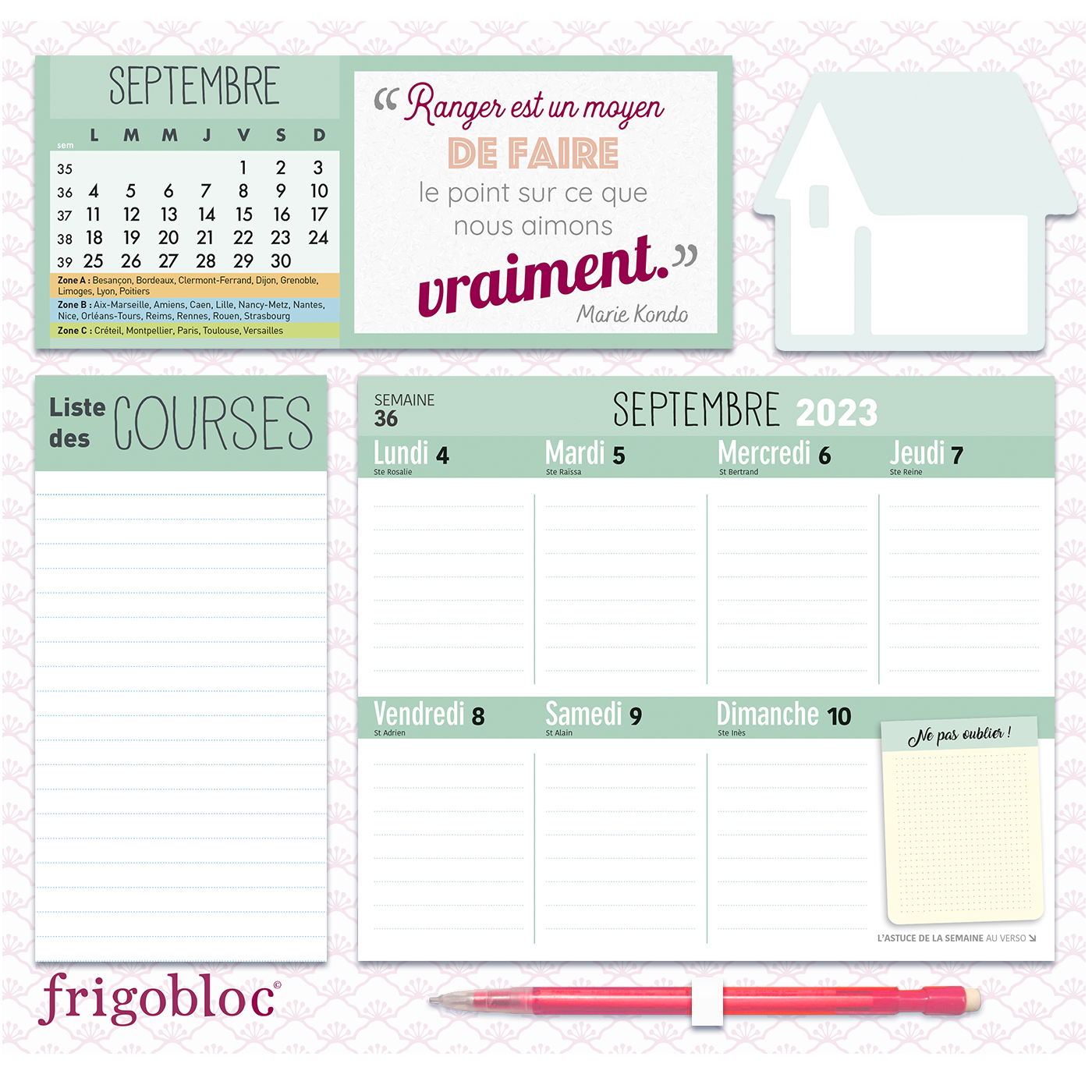 Pour trouver une librairie où acheter Frigobloc Hebdomadaire 2024 Maison zen (de sept. 2023 à déc. 2024), on vous invite à visiter le site Place des libraires !Place des Libraires