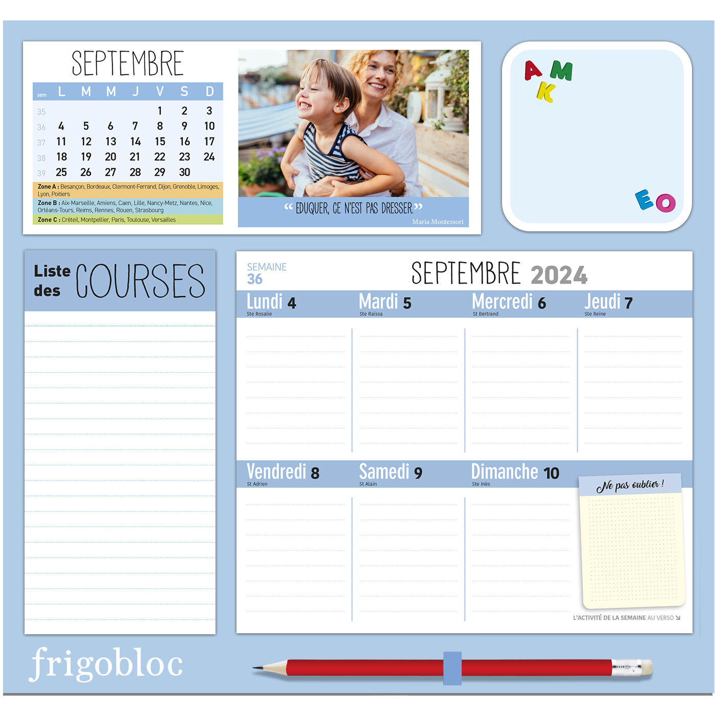 Pour trouver une librairie où acheter Frigobloc Hebdomadaire 2025 Montessori (de sept. 2024 à déc. 2025), on vous invite à visiter le site Place des libraires !Place des Libraires