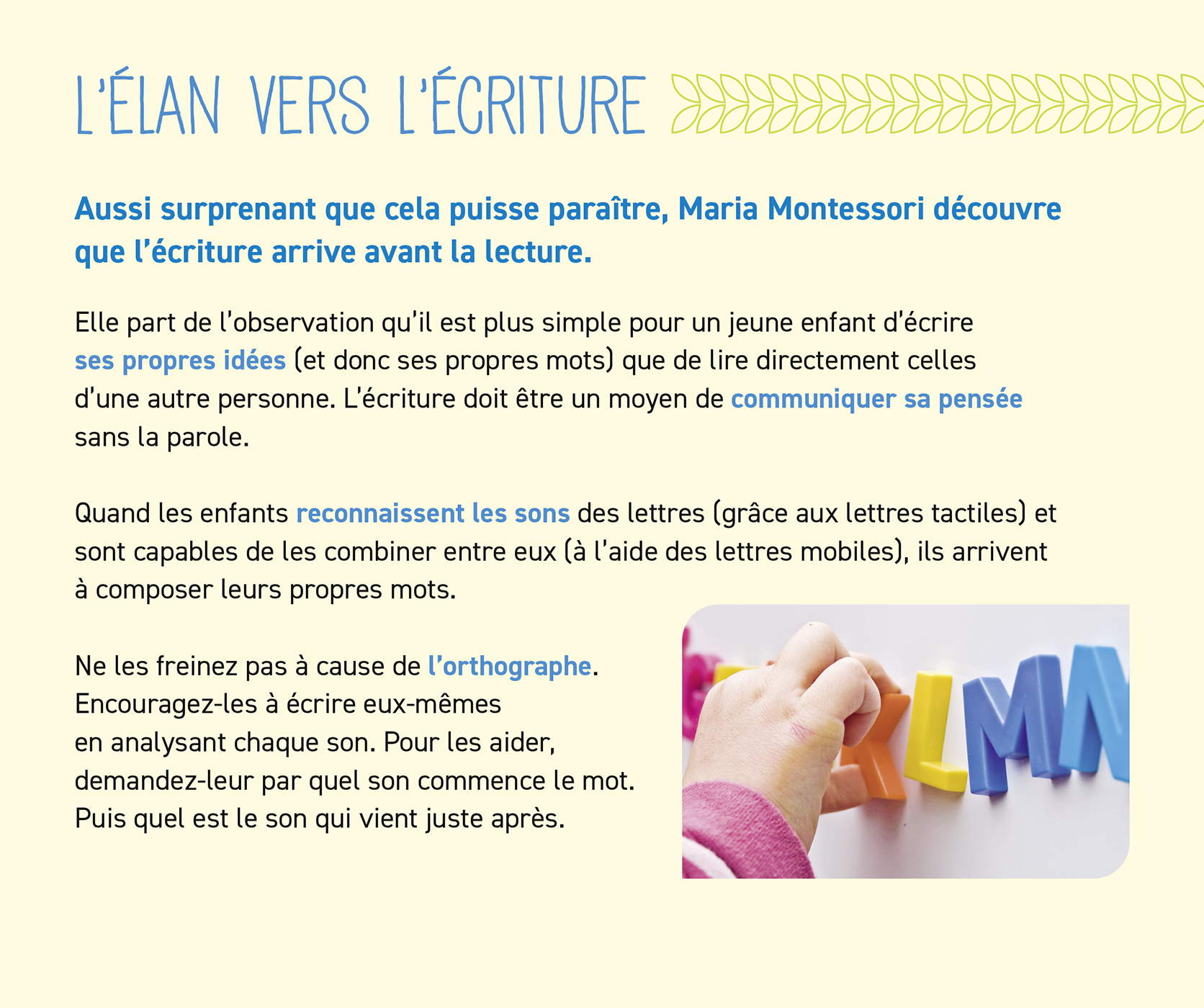 – 70 pages de principes éducatifs et de nombreux conseils de Maria Montessori, des activités d'intérieur et d'extérieur à faire en famille, des recettes que votre enfant peut réaliser seul…