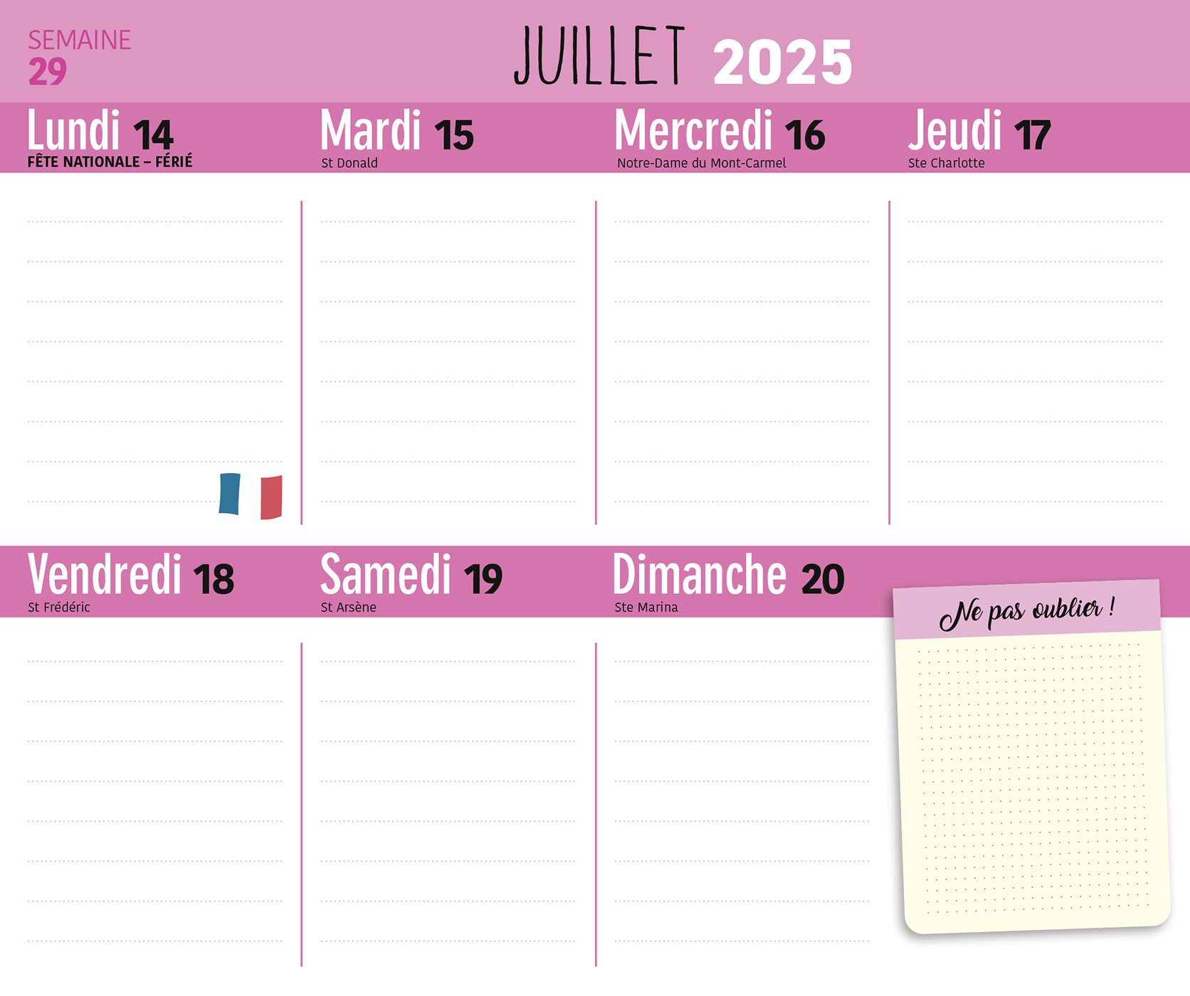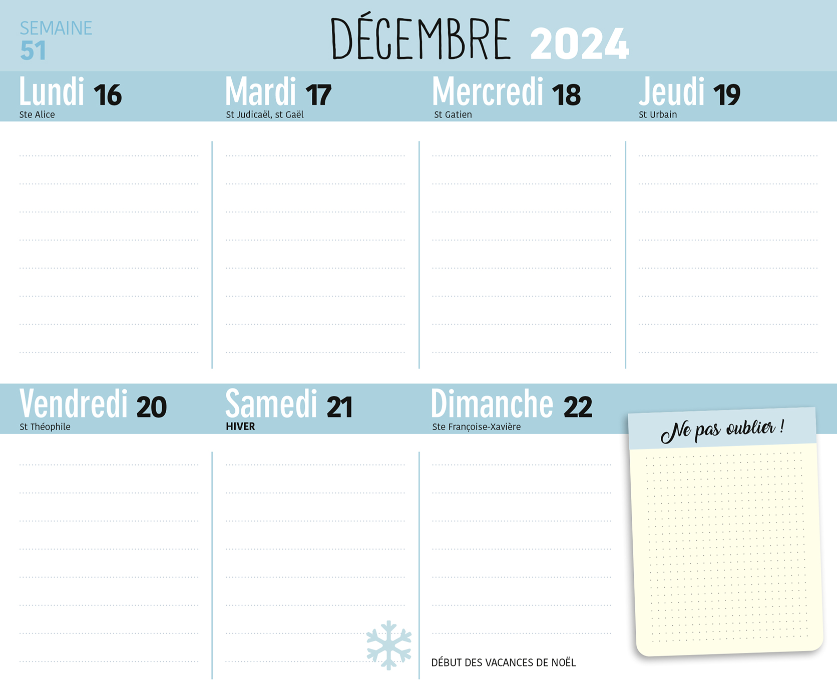 Au recto, le planning d'organisation par semaine permet de noter tous les événements de votre vie de famille.