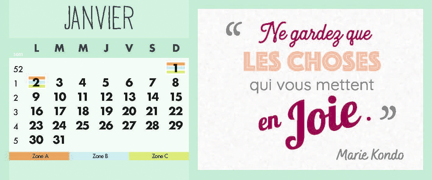 Avec ce calendrier maxi aimanté qui tient sur tous les frigos (aimant renforcé), planifiez tout de septembre 2022 à décembre 2023. Avoir une maison bien aménagée, bien rangée et bien décorée permet d’améliorer votre qualité de vie et votre bien-être au quotidien. Fini les heures passées à ranger des choses dont vous ne vous servez pas : grâce à des coachs en rangement, découvrez quelques astuces et conseils qui amélioreront significativement votre quotidien. Être zen chez soi ? C’est facile !