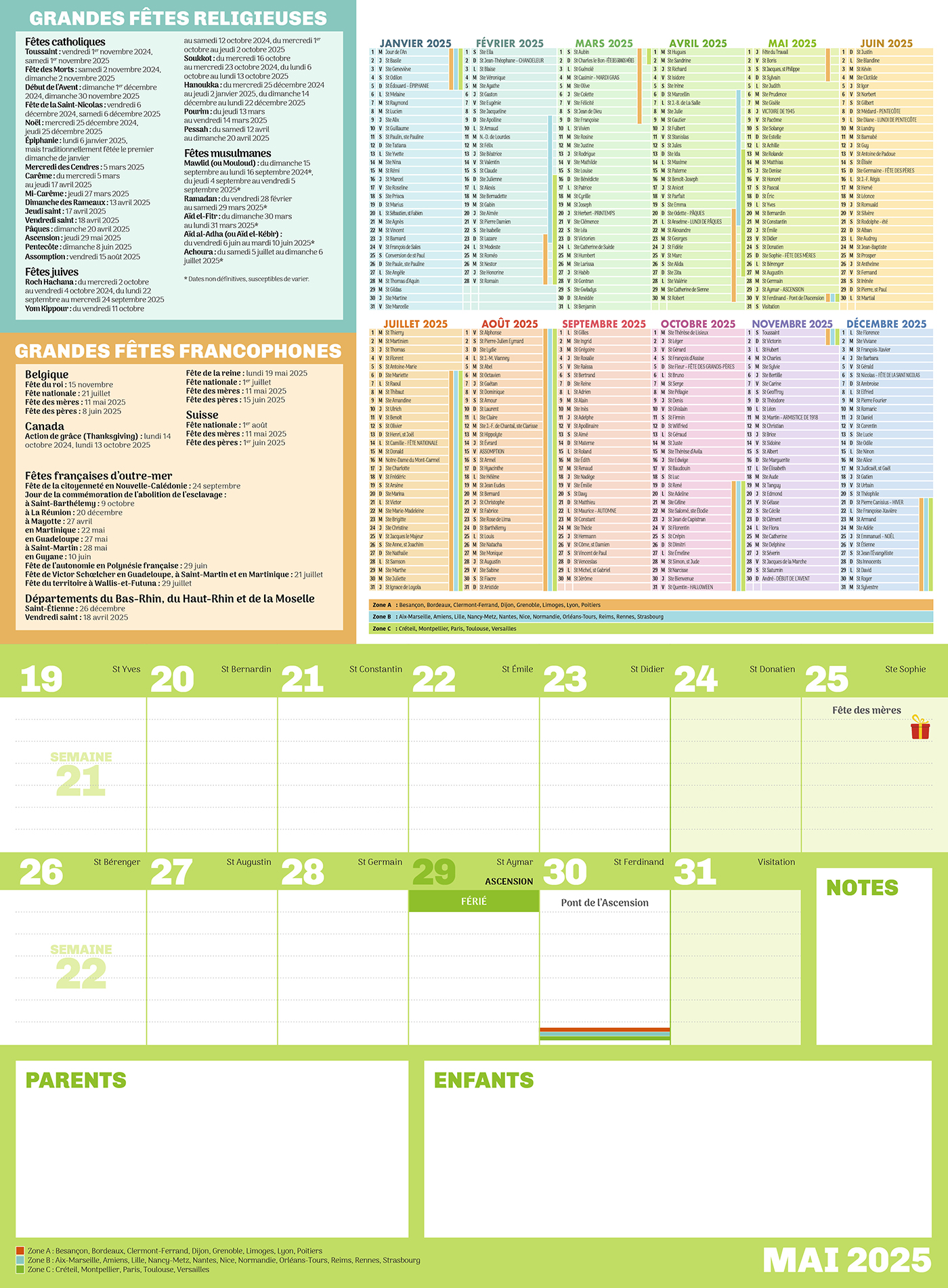 Plus simple, ça n'existe pas ! Un calendrier familial sans froufrou pour organiser toute son année de septembre 2024 à décembre 2025 (16 mois).