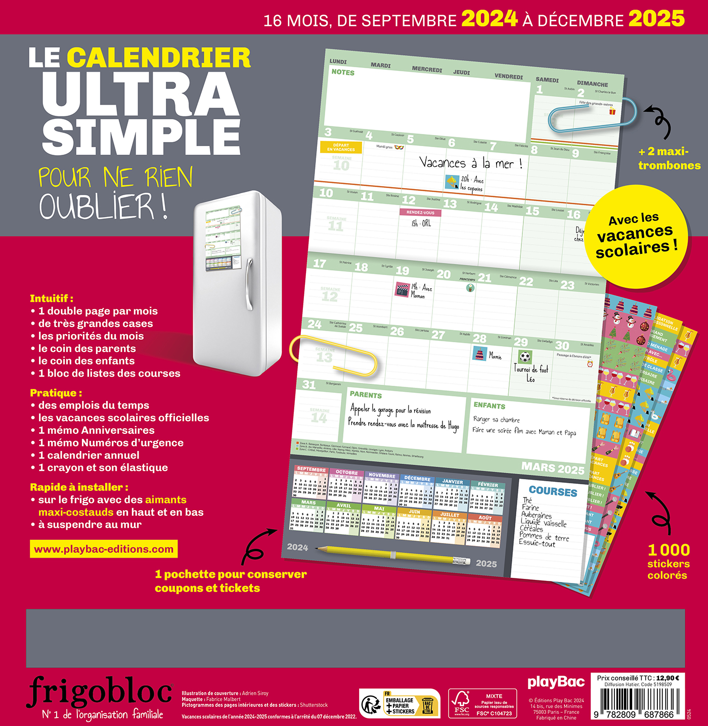 Pour trouver une librairie où acheter Frigobloc Le calendrier Ultra Simple pour une famille organisée ! (de sept. 2024 à déc. 2025), on vous invite à visiter le site Place des libraires !Place des Libraires