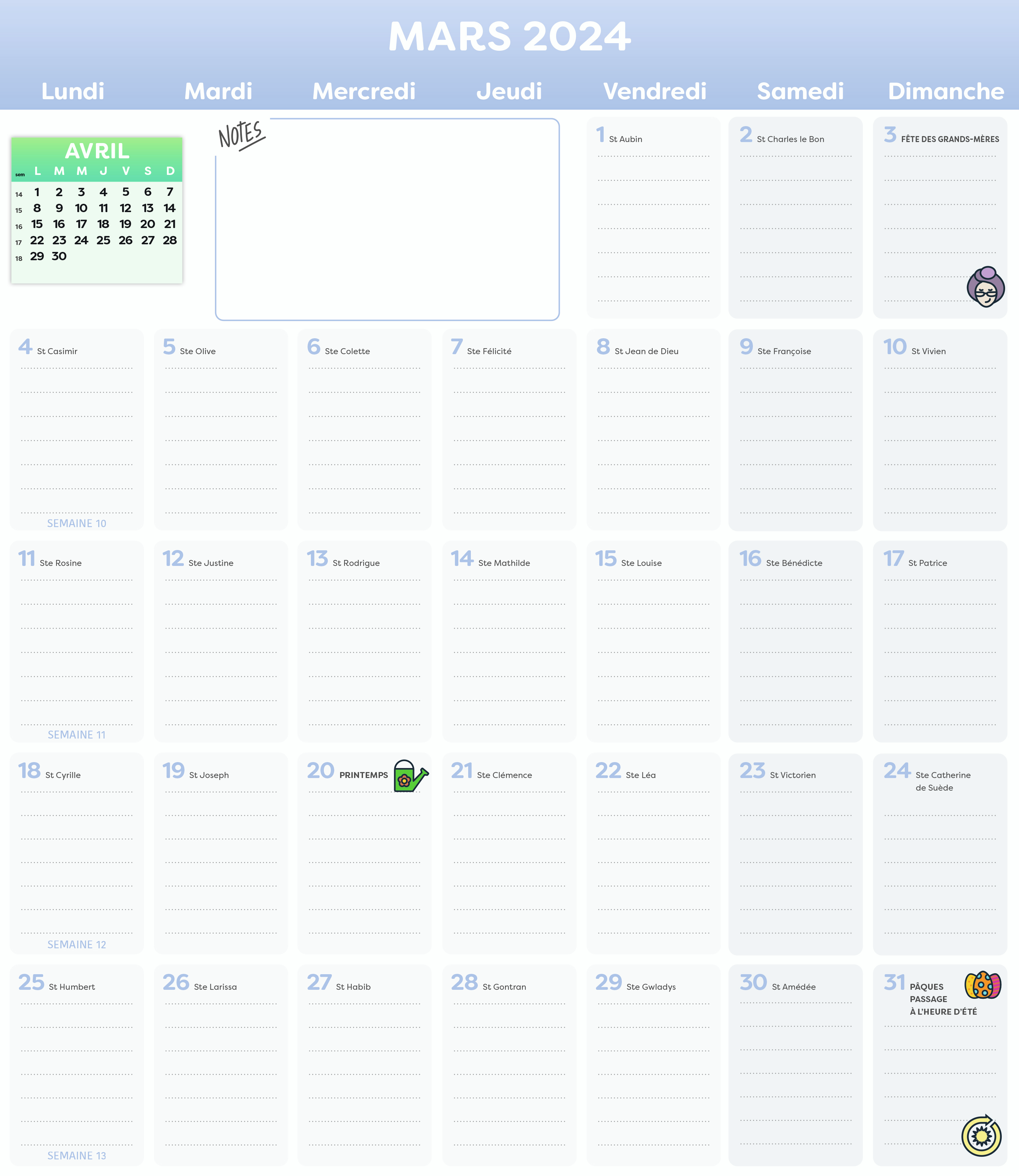 Grâce à ses grandes cases hyper pratiques, le planning d'organisation par mois permet de tout noter et de ne rien rater de la vie familiale !