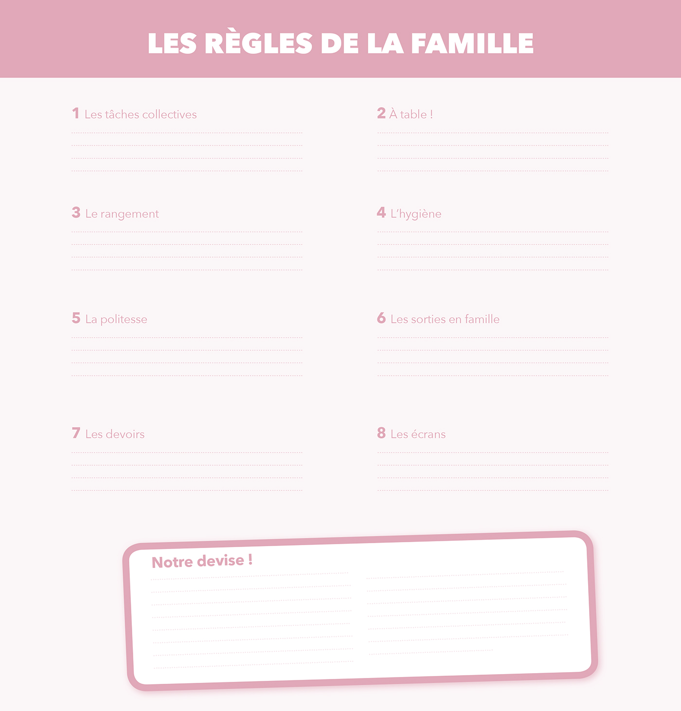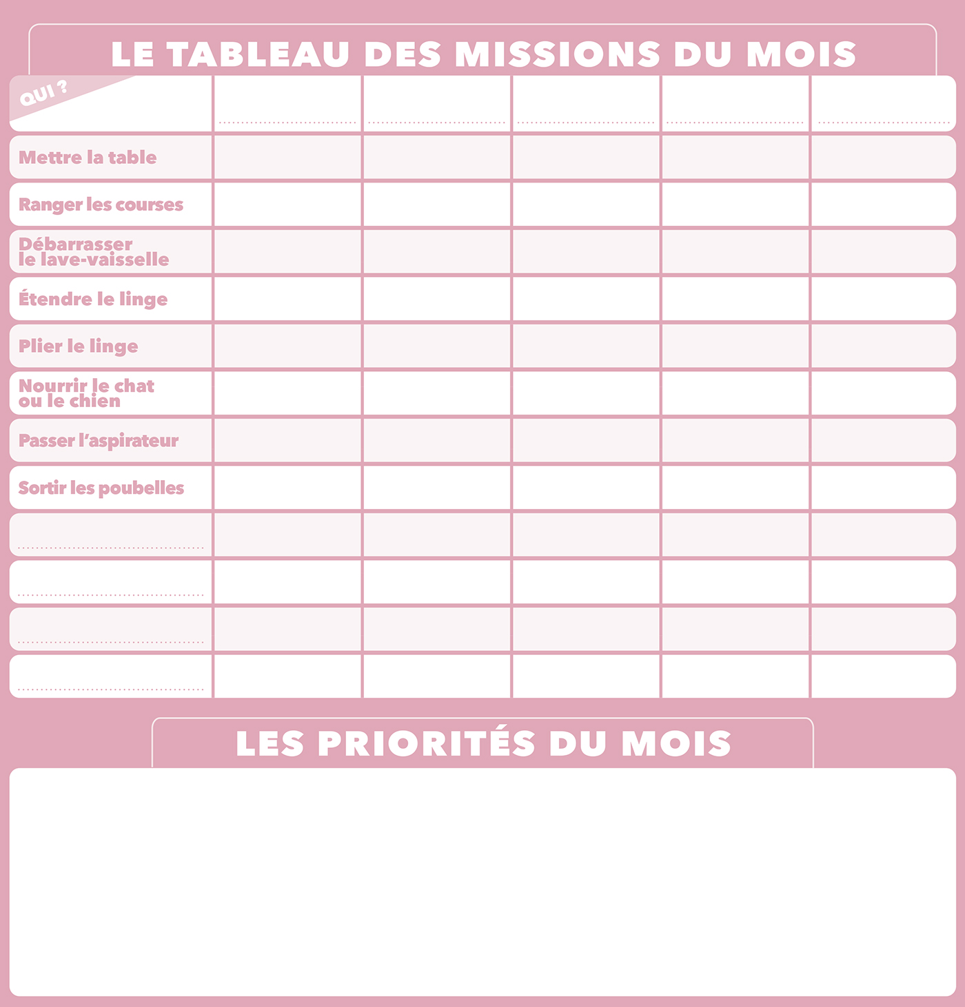 – Des fiches pratiques pour s’organiser seul ou en famille : numéros utiles, mémo anniversaire, priorités du mois, qui fait quoi, emploi du temps.