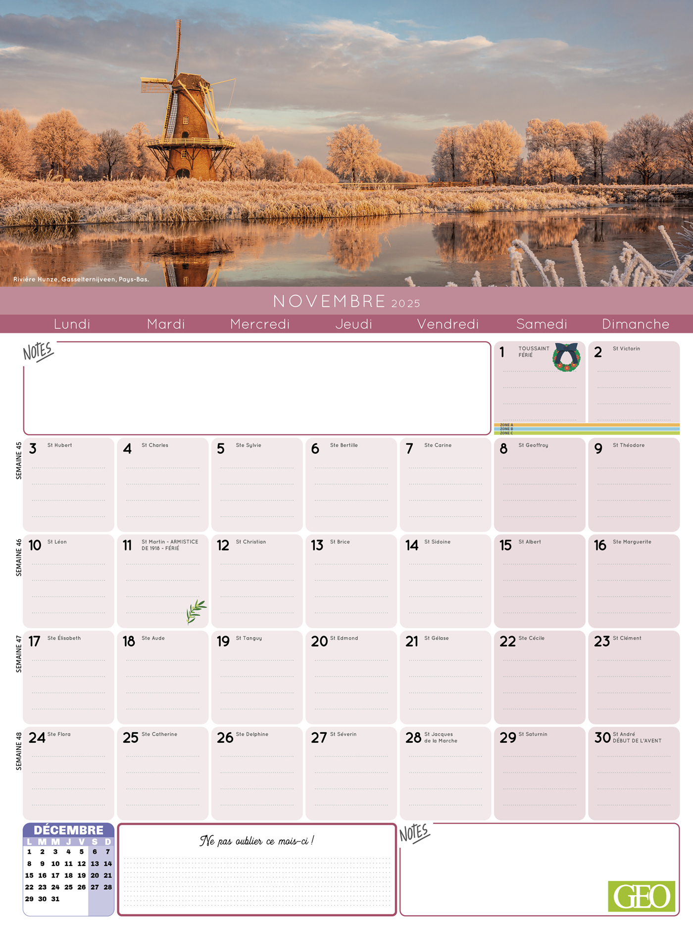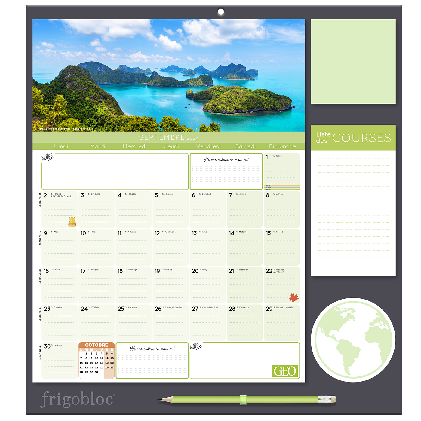 Planifiez tout sur 16 mois, de septembre 2024 à décembre 2025 avec ce calendrier maxi-aimanté. Le planning d'organisation mensuel permet de tout noter et de ne rien rater de la vie familiale, et chaque mois, retrouvez une belle et grande photo GEO pour vous évader à travers le monde (photos 100% nouvelles).