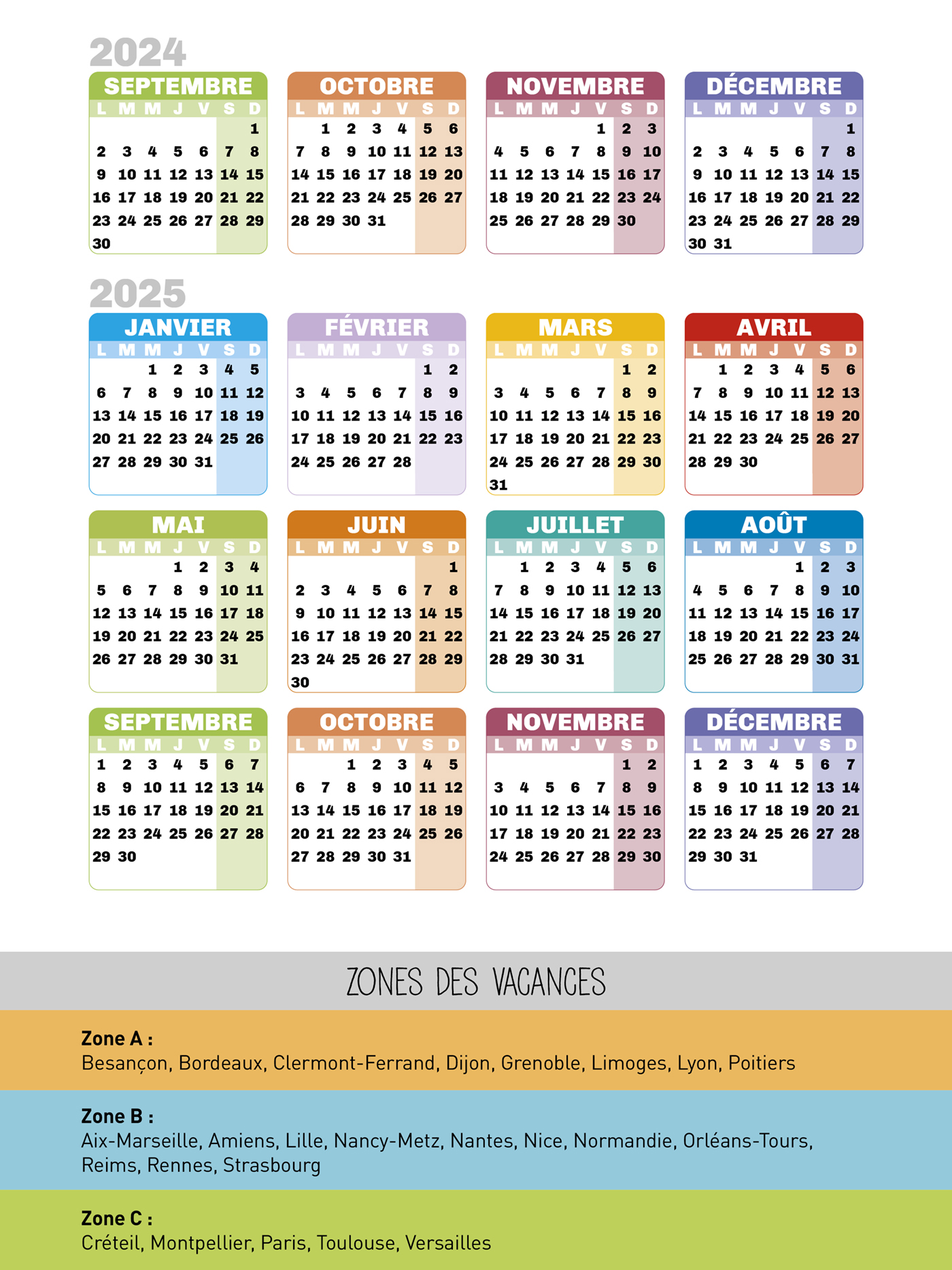Avec les dates officielles des vacances scolaires !