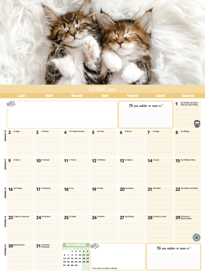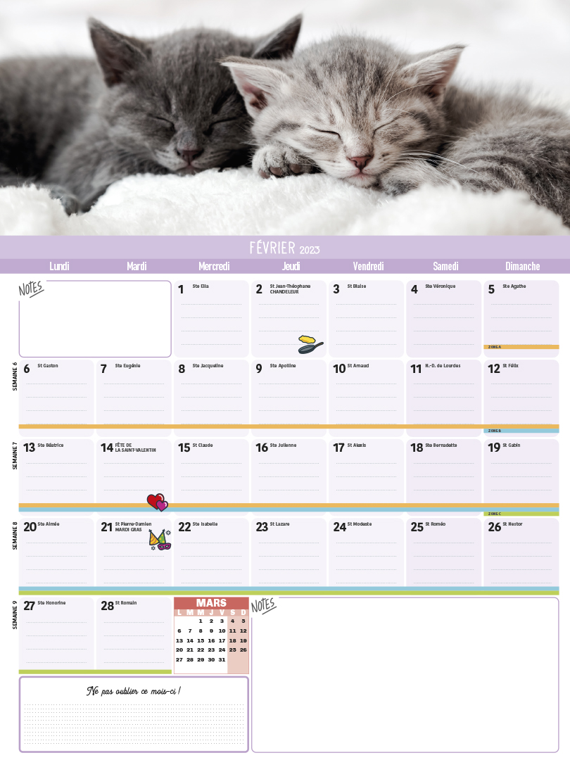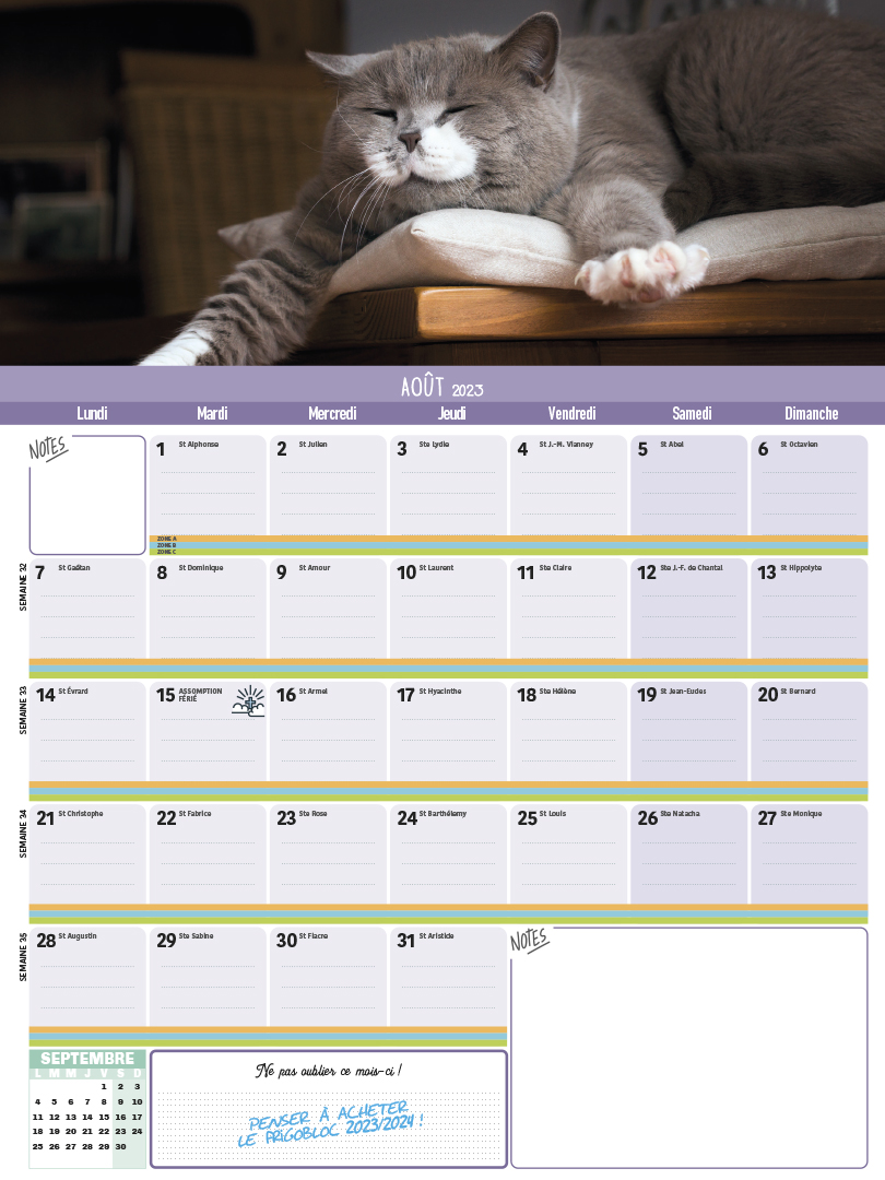 Avec ce calendrier maxi aimanté qui tient parfaitement sur tous les frigos (aimant renforcé), planifiez tout de septembre 2022 à décembre 2023. Le planning d’organisation par mois permet de tout noter et de ne rien rater de la vie familiale, et chaque mois, retrouvez une belle et grande photo de vos chats préférés. Avec en bonus des blocs de listes de courses, des notes repositionnables, l’emploi du temps des enfants et une fiche de numéros utiles. S’organiser n’a jamais été aussi simple !