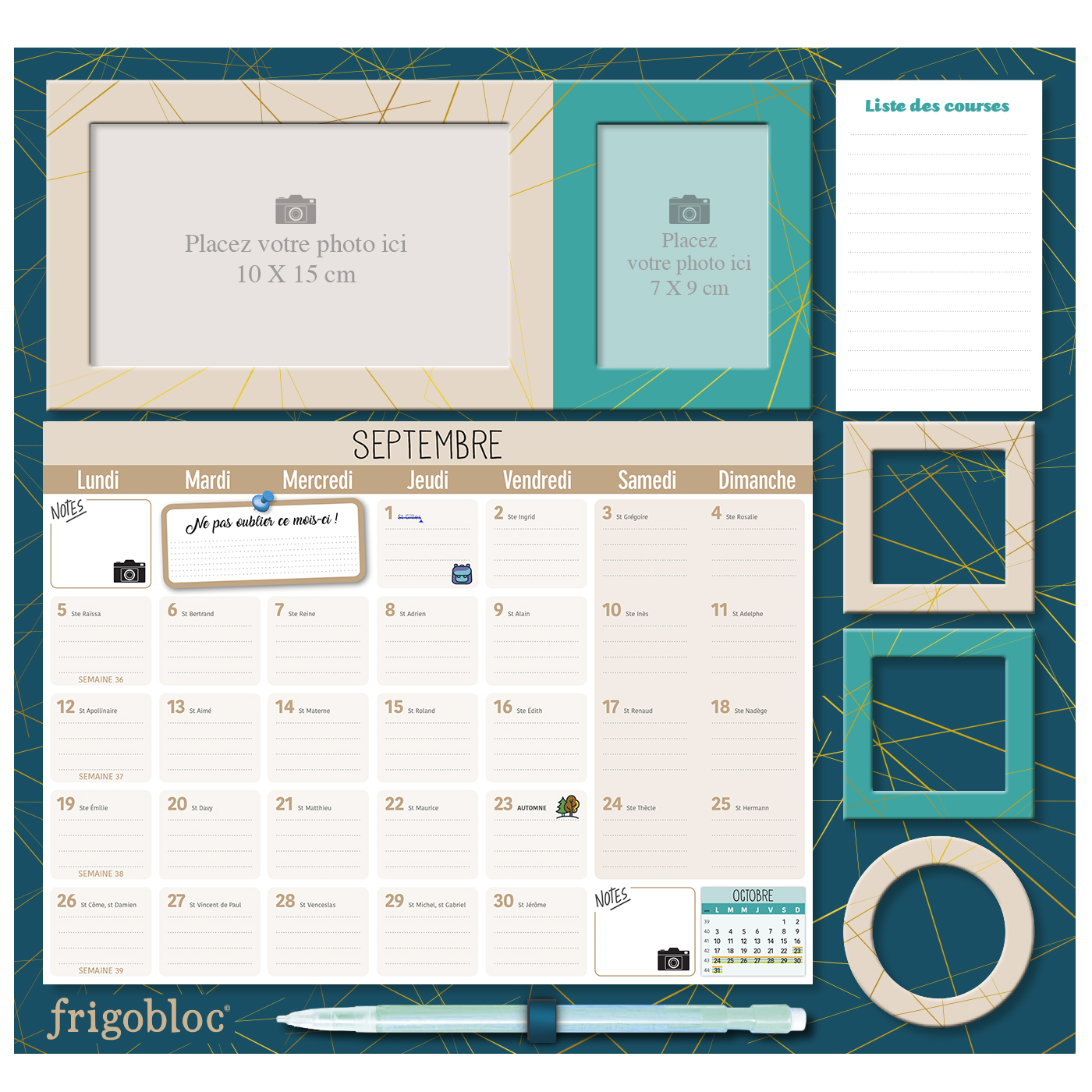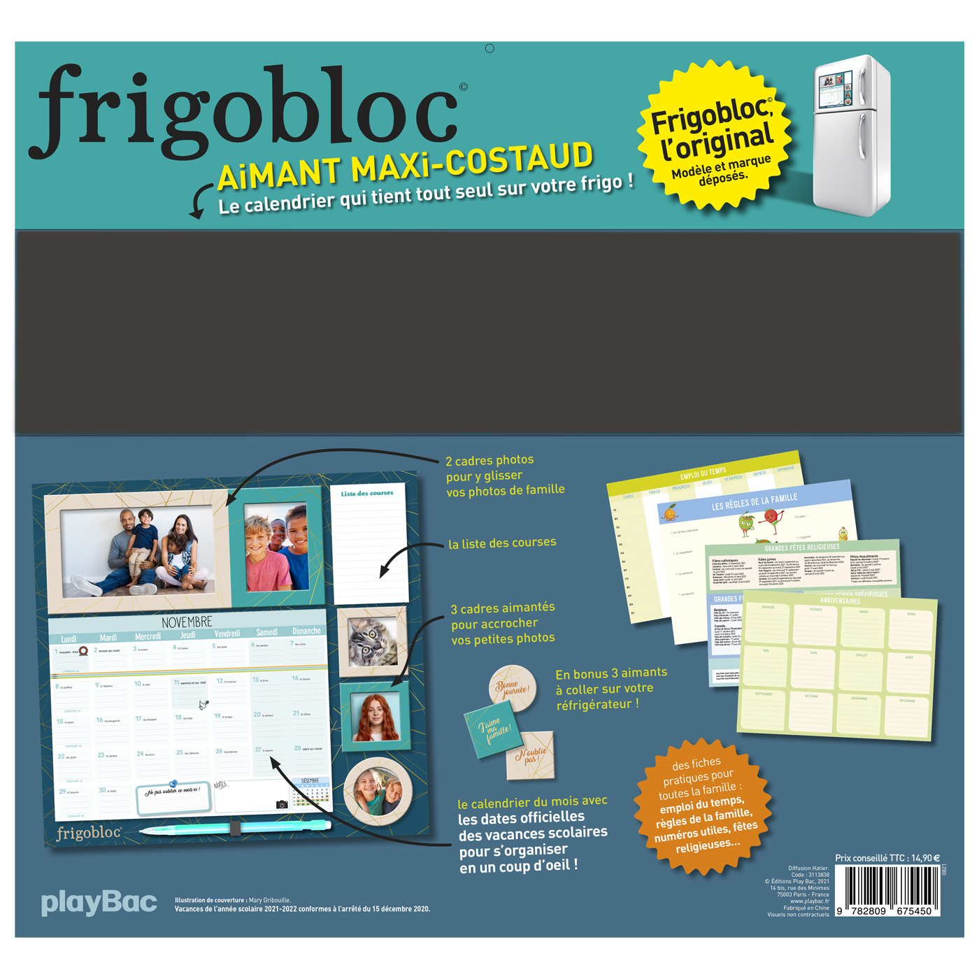 Avec ce calendrier maxi aimanté qui tient parfaitement sur tous les frigos (aimant renforcé), planifiez tout de septembre 2022 à décembre 2023. Le planning d’organisation par mois permet de tout noter et de ne rien rater de la vie familiale. Avec en bonus des blocs de listes de courses, l’emploi du temps des enfants, une fiche de numéros utiles, des cadres photo avec des formats différents pour mettre vos photos préférées et de jolis aimants pour décorer votre frigo. S’organiser n’a jamais été aussi simple !