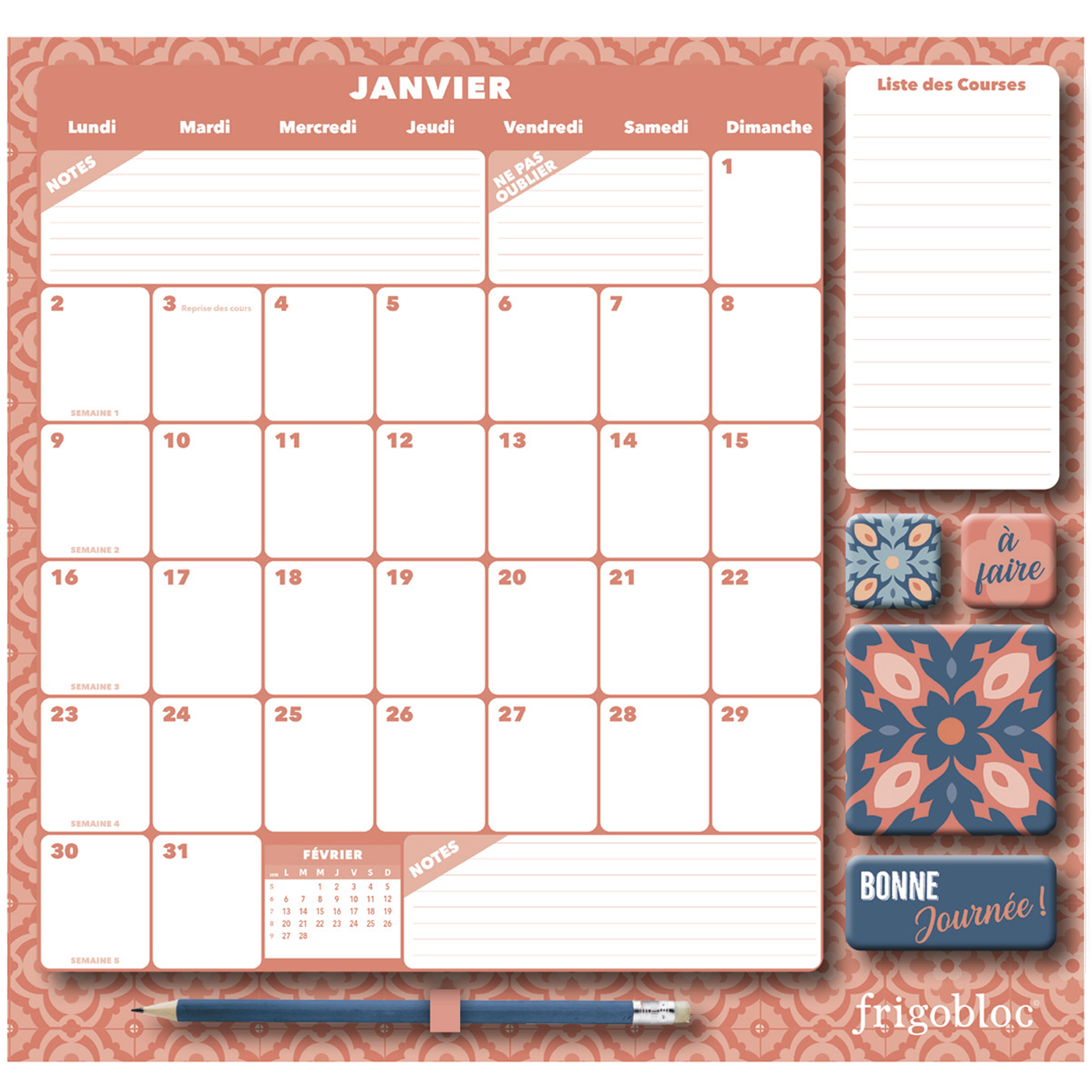 Avec ce calendrier maxi aimanté qui tient parfaitement sur tous les frigos, planifiez tout de janvier à décembre 2023 en apportant une touche déco à votre intérieur. Le planning d’organisation par mois, avec de grandes cases, permet de tout noter et de ne rien rater de la vie familiale. Avec un bloc de listes de courses, 4 superbes aimants pour accrocher vos papiers et décorer votre frigo et des fiches pratiques pour s’organiser seul ou en famille : numéros utiles, mémo anniversaire, priorités du mois, qui fait quoi, emploi du temps.