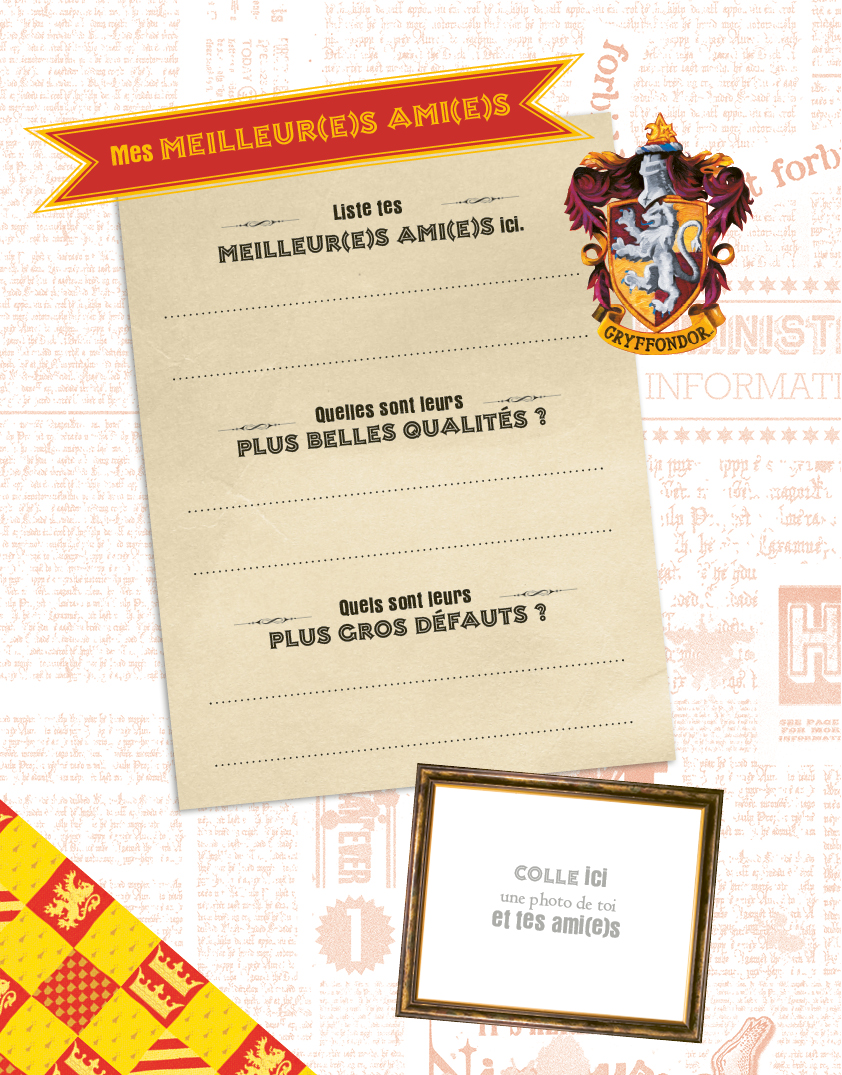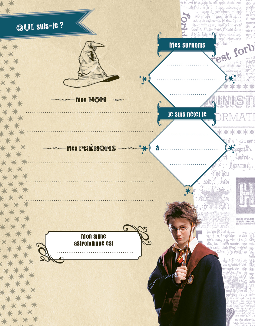 Le coffret contient un journal secret avec du doré sur la couverture, un cadenas et des clés dorés pour mettre ses secrets à l'abri ; un stylo magique qui écrit avec une encre invisible, qui se révèle uniquement si elle est éclairée par la lampe incrustée dans le capuchon du stylo ; un superbe porte-clés doré ; une adorable gomme à l'effigie de la chouette Hedwige et deux rouleaux de masking-tape avec de jolis motifs Harry Potter pour décorer les pages du journal ; un bloc-notes pour noter des petits mots.