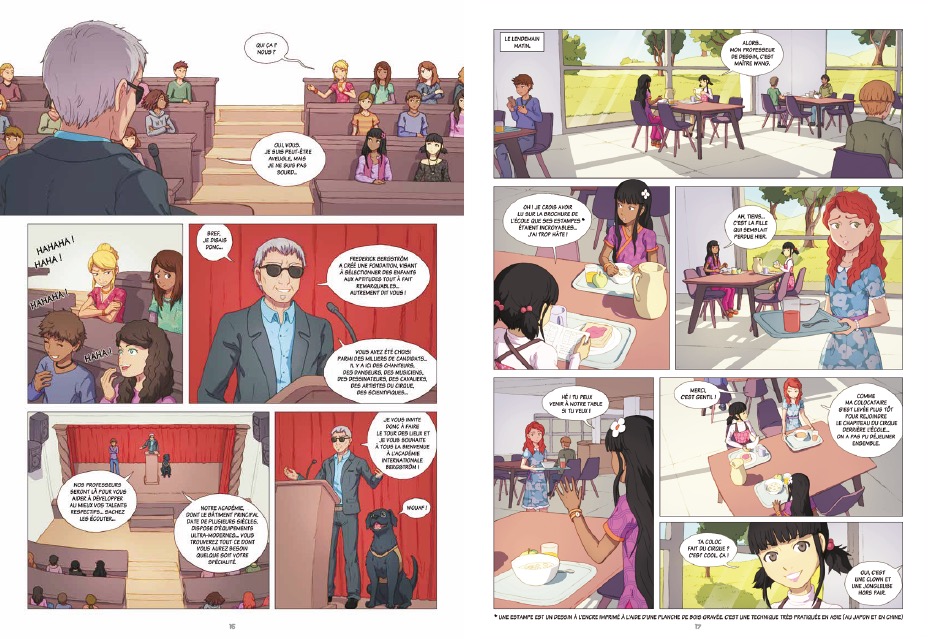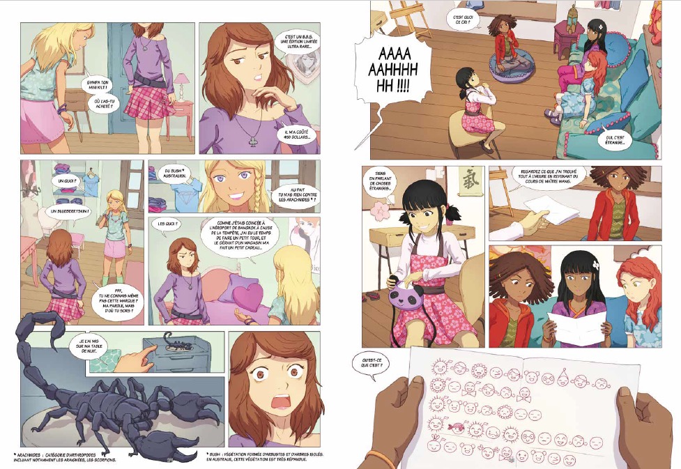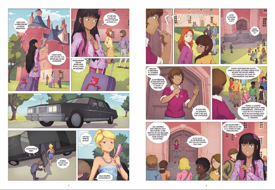 Kumiko est japonaise et aime dessiner. Alexa est australienne. Sa passion, c’est l’équitation. Idalina est espagnole, elle chante à longueur de journée. Rajani est indienne. Son rêve ? Danser. Naïma est américaine. Elle ne vit que pour le cirque. Loin de leur pays, elles font leur rentrée à la prestigieuse académie Bergström. Elles y deviendront amies pour la vie et vivront des aventures incroyables ! D’après la série qui a donné le goût de la lecture à plus de 3 millions de lectrices !