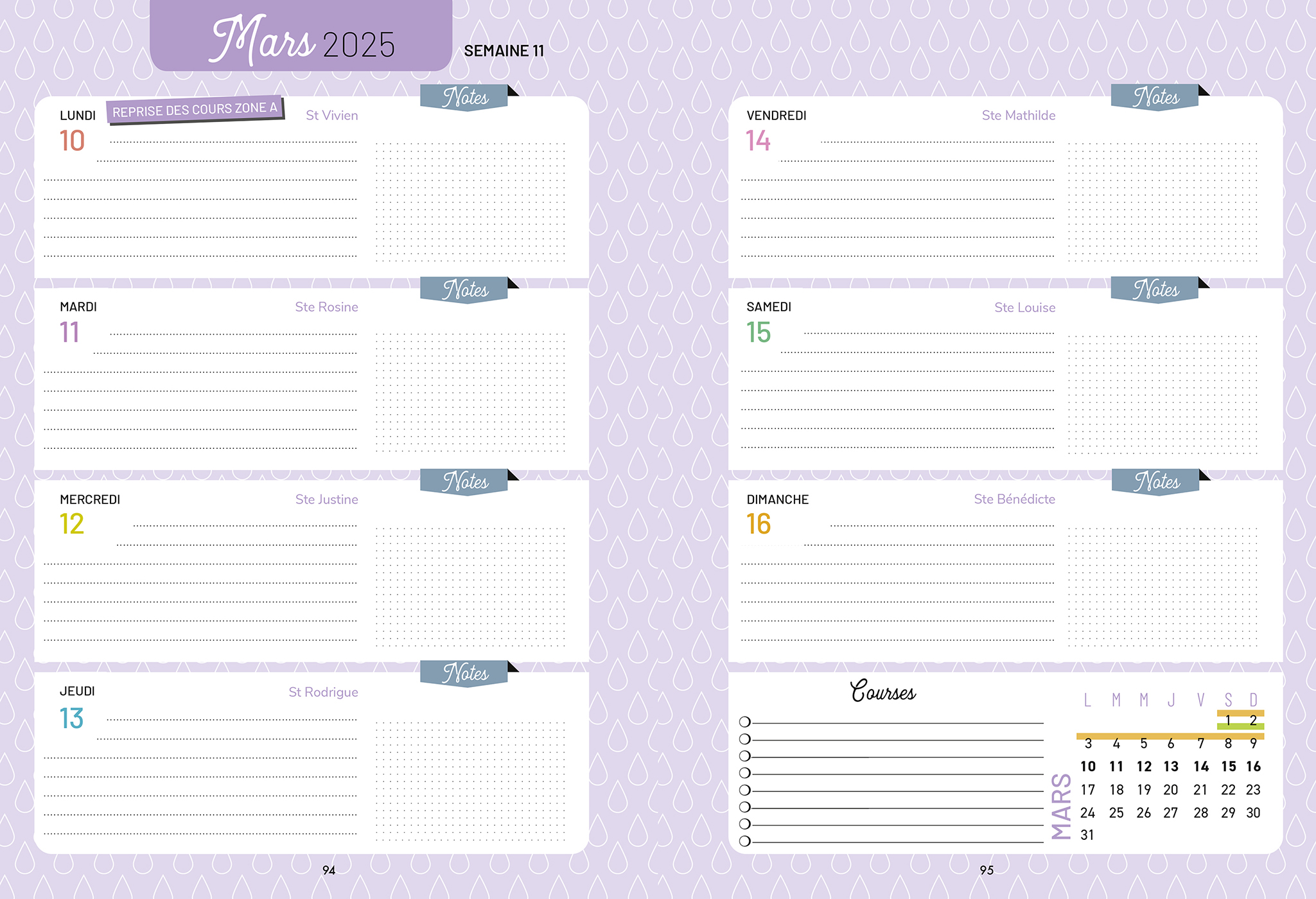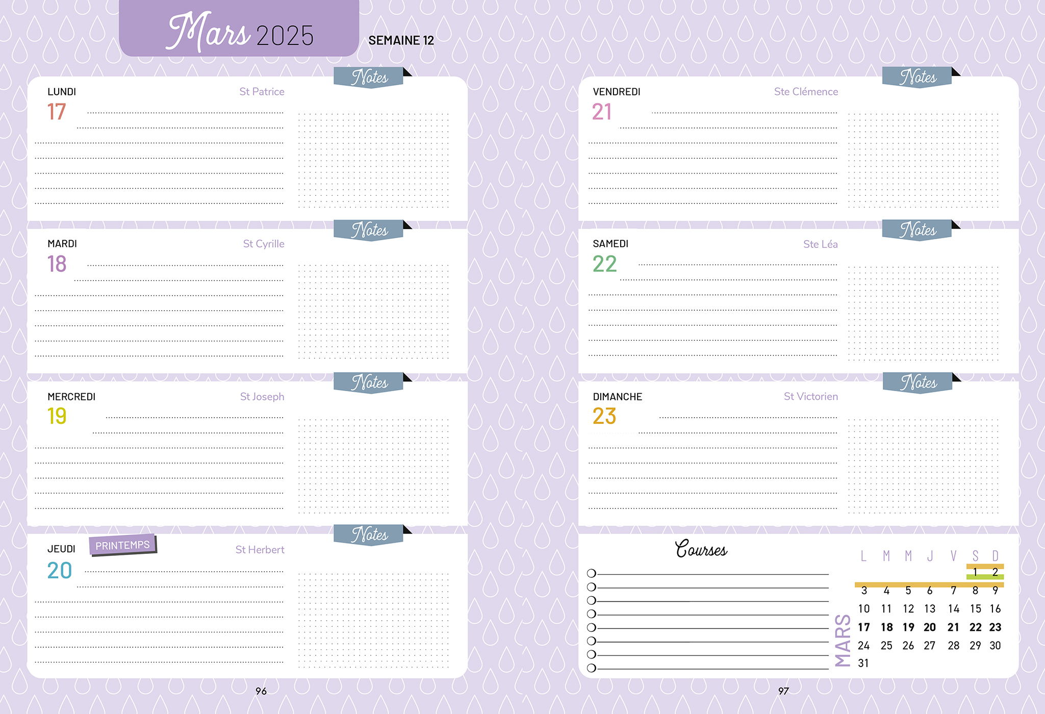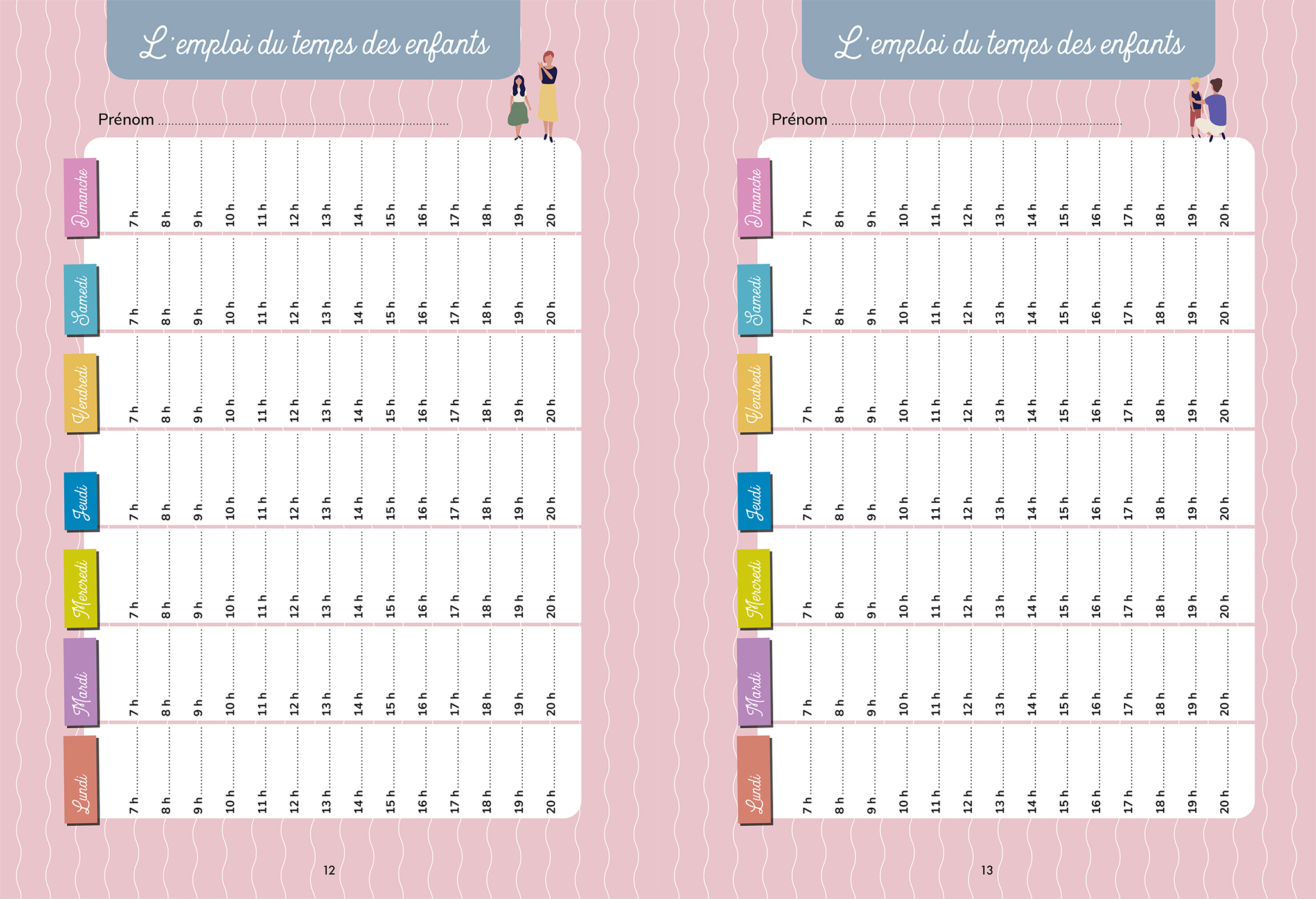 – Des pages ultra pratiques (contacts, emplois du temps, check-lists et budgets de vacances, etc.)