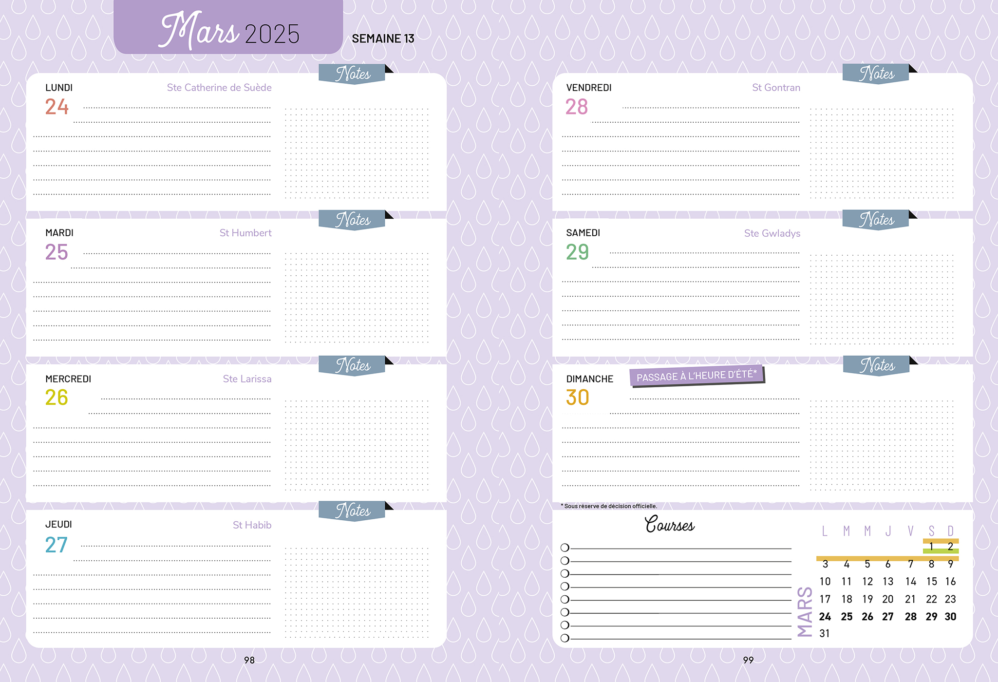 Et chaque semaine, tous les indispensables pour s'organiser :