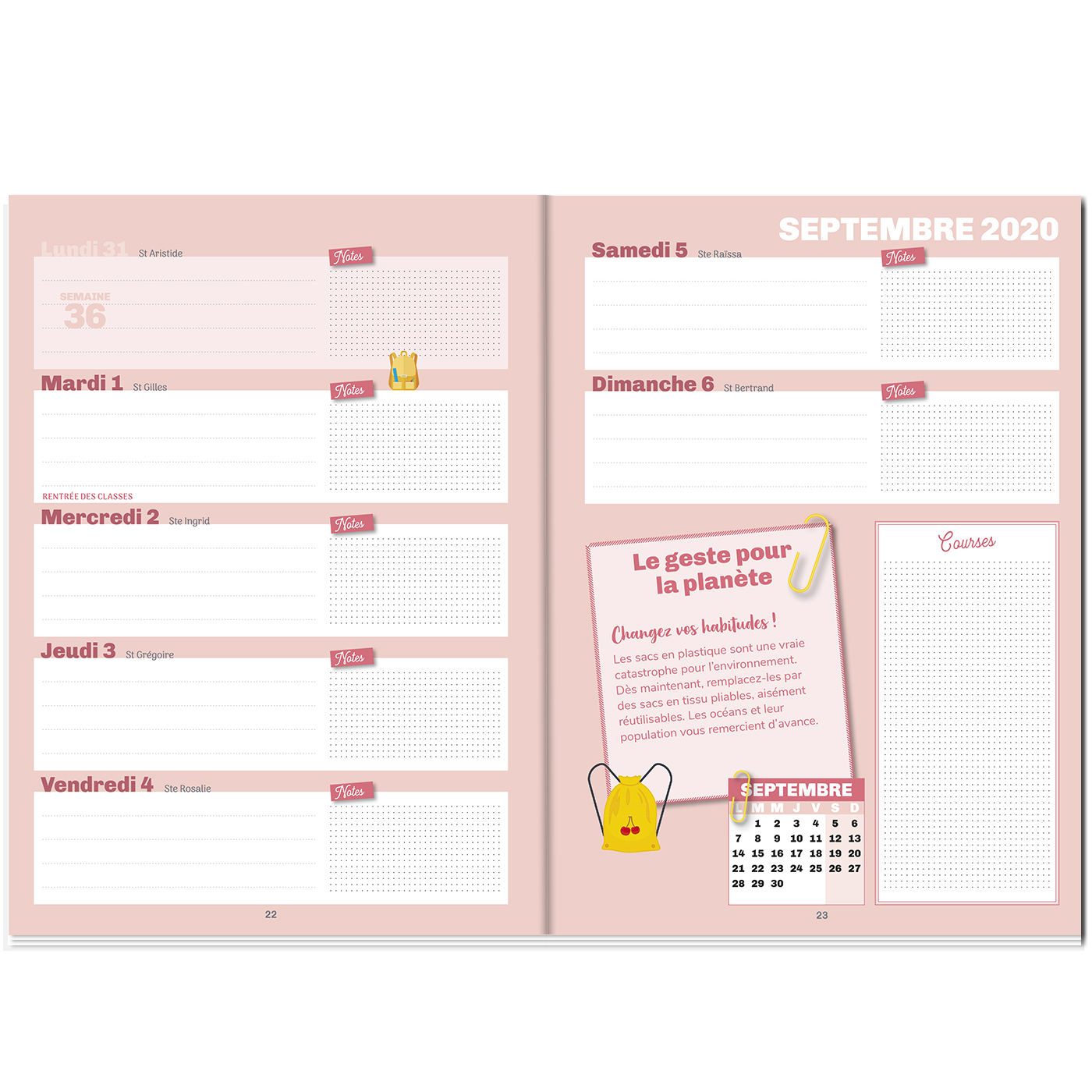 Un agenda ultra-simple pour s’organiser en famille sans chichis : – Une entrée mensuelle épurée avec un espace dédié aux parents et un autre aux enfants, un emplacement pour noter les priorités du mois et une citation inspirante. – Des semainiers hebdomadaires aérés et clairs avec un espace de notes pour tous les jours de la semaine, une vision du mois en cours, une recette pour la semaine et une liste de courses à remplir. – 160 stickers pratiques et variés accessibles à toute la famille ! – Un rabat au début de l’agenda pour y glisser des papiers ou à utiliser comme marque-page.