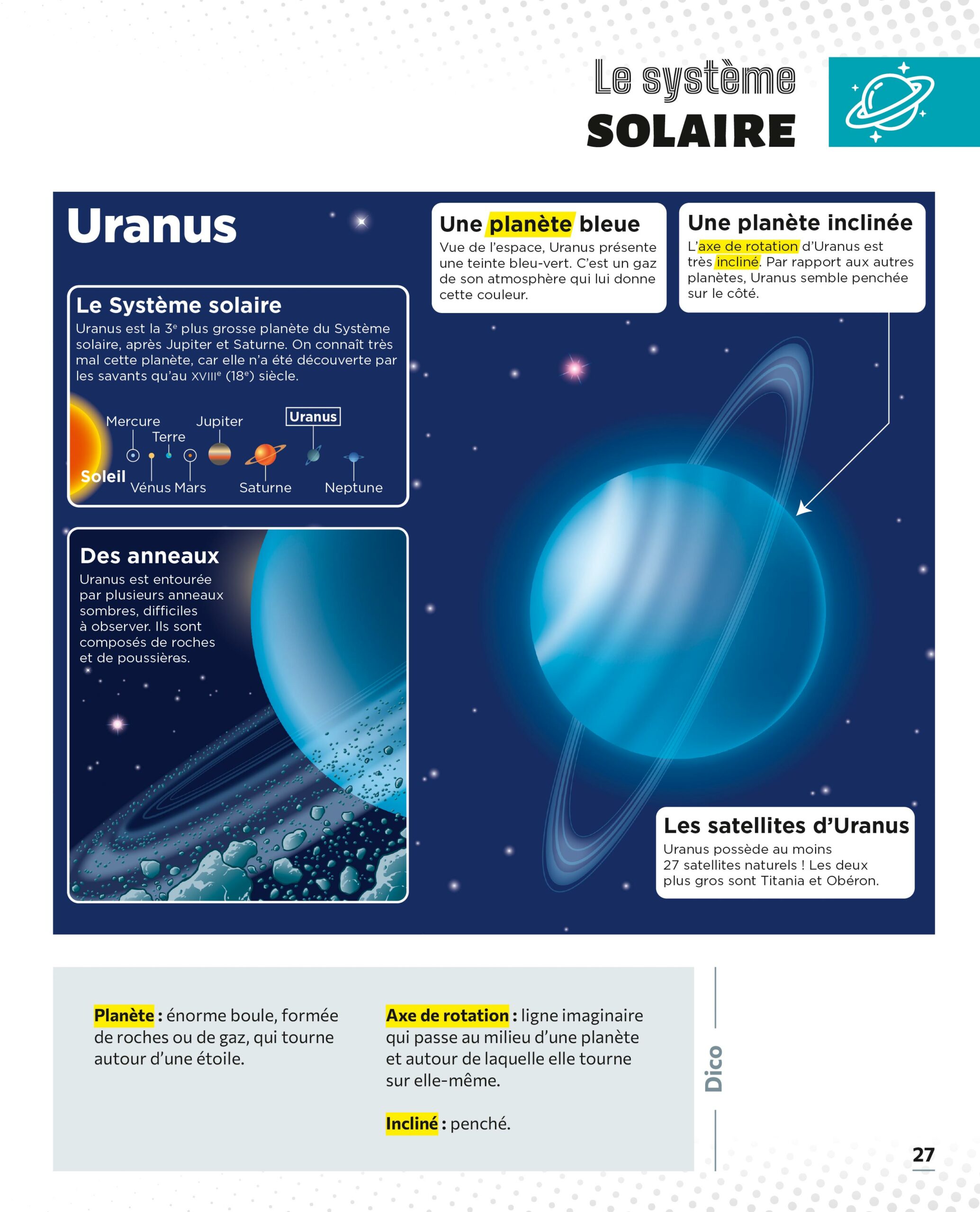 À quoi sert un satellite ? Qu’est-ce que l’apesanteur ? Que voit-on dans le ciel la nuit ? Grâce à des infographies et des explications claires, découvre l’espace et ses mystères, prépare ton exposé ou approfondis tes connaissances sur ce sujet passionnant ! À la fin de l’ouvrage, l’index te guidera selon tes besoins : recherche alphabétique ou thématique. Un livre pour tous les petits et grands curieux, qui ont soif de connaissance. De 7 à 107 ans.