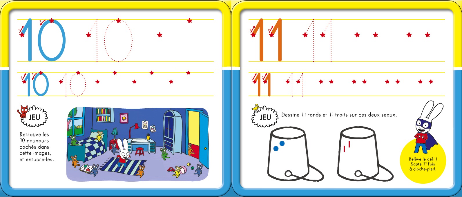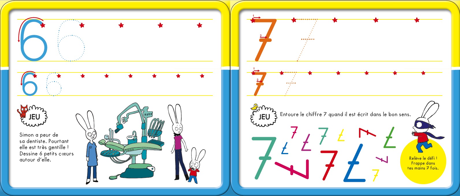 Apprends à écrire les nombres de 1 à 12 avec l’ardoise effaçable Simon et deviens un expert comme Superlapin ! Sur chaque page, découvre une petite activité et des défis en lien avec les chiffres à tracer. Efface et recommence à l’infini ! Des conseils aux parents pour accompagner au mieux son enfant dans l’apprentissage.