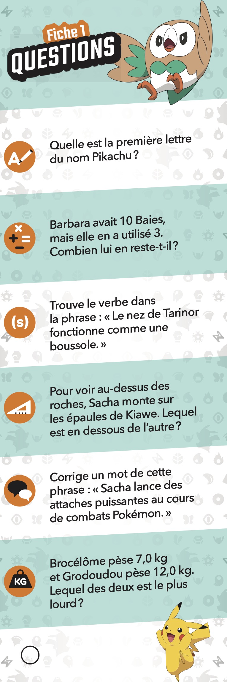 Prépare ta rentrée en CE1 avec cet éventail de questions-réponses dans l’univers des Pokémon.