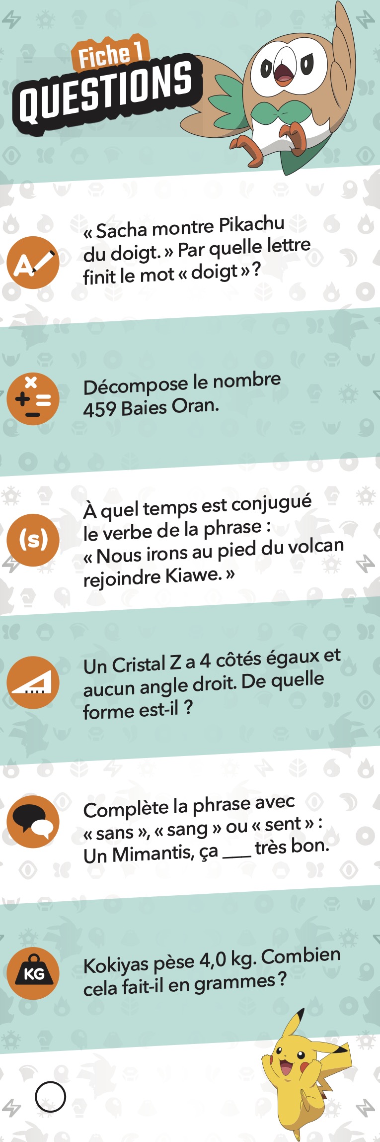 Prépare ta rentrée en CM1 avec cet éventail de questions-réponses dans l’univers des Pokémon.